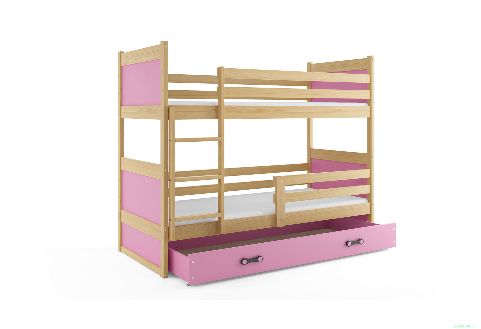 Recenzie - Poschodová posteľ Rico borovica / ružový 90x200 cm s roštom, matracom (0)