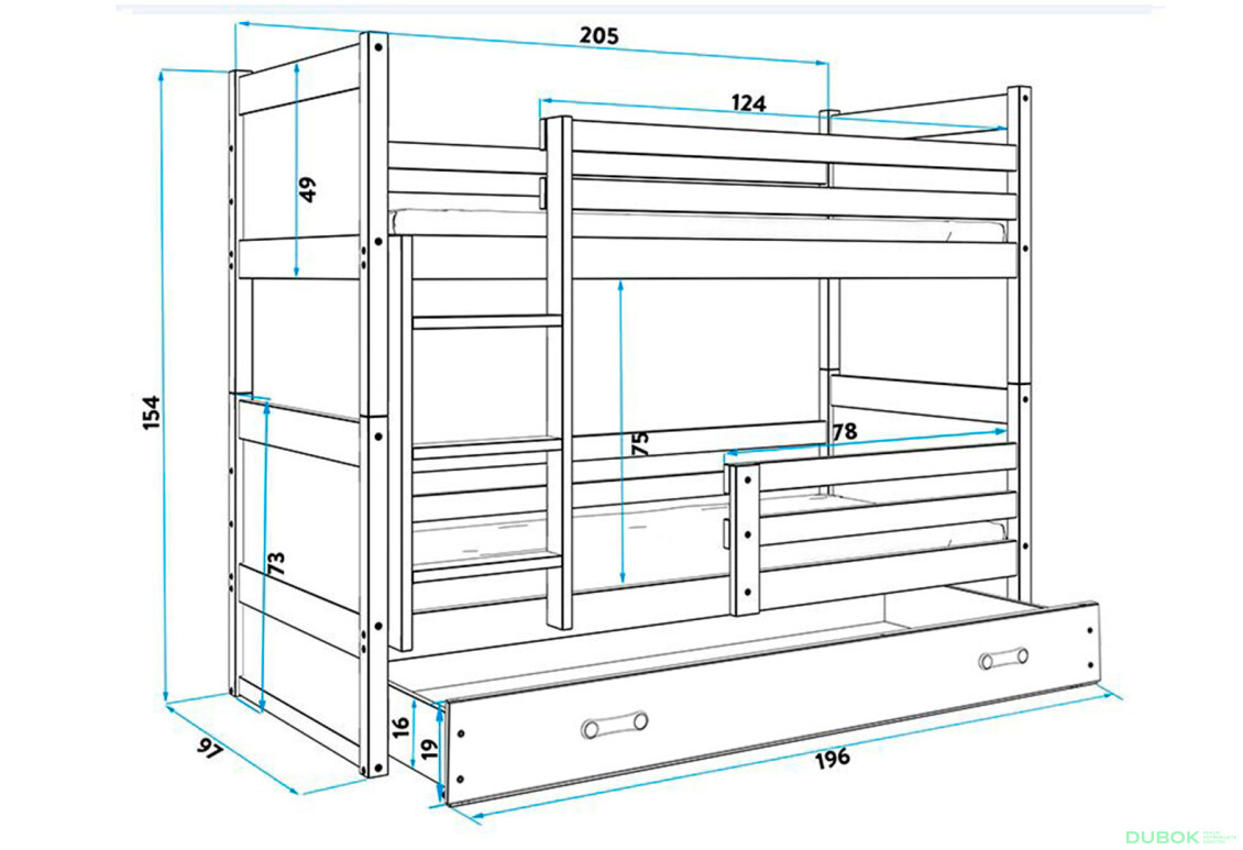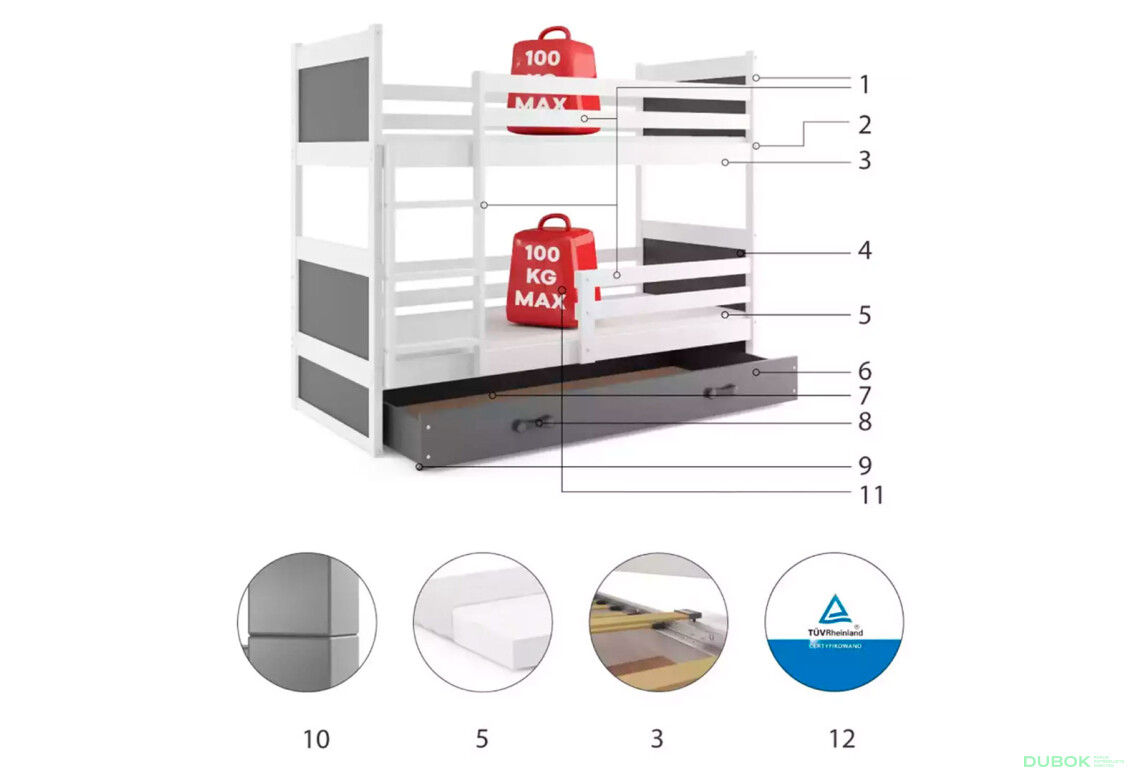 - Maximálne zaťaženie. Posteľ unese až 100 kg na jedno lôžko, čo je ideálne pre deti aj dospelých.