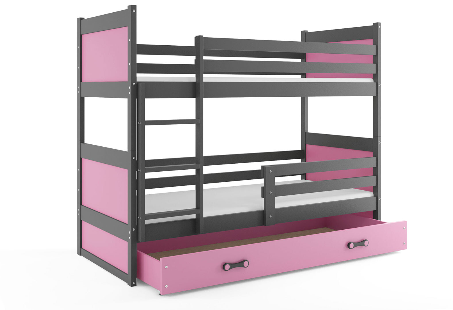 Fotografia 1 - Poschodová posteľ Rico grafit / ružový 90x200 cm s roštom, matracom