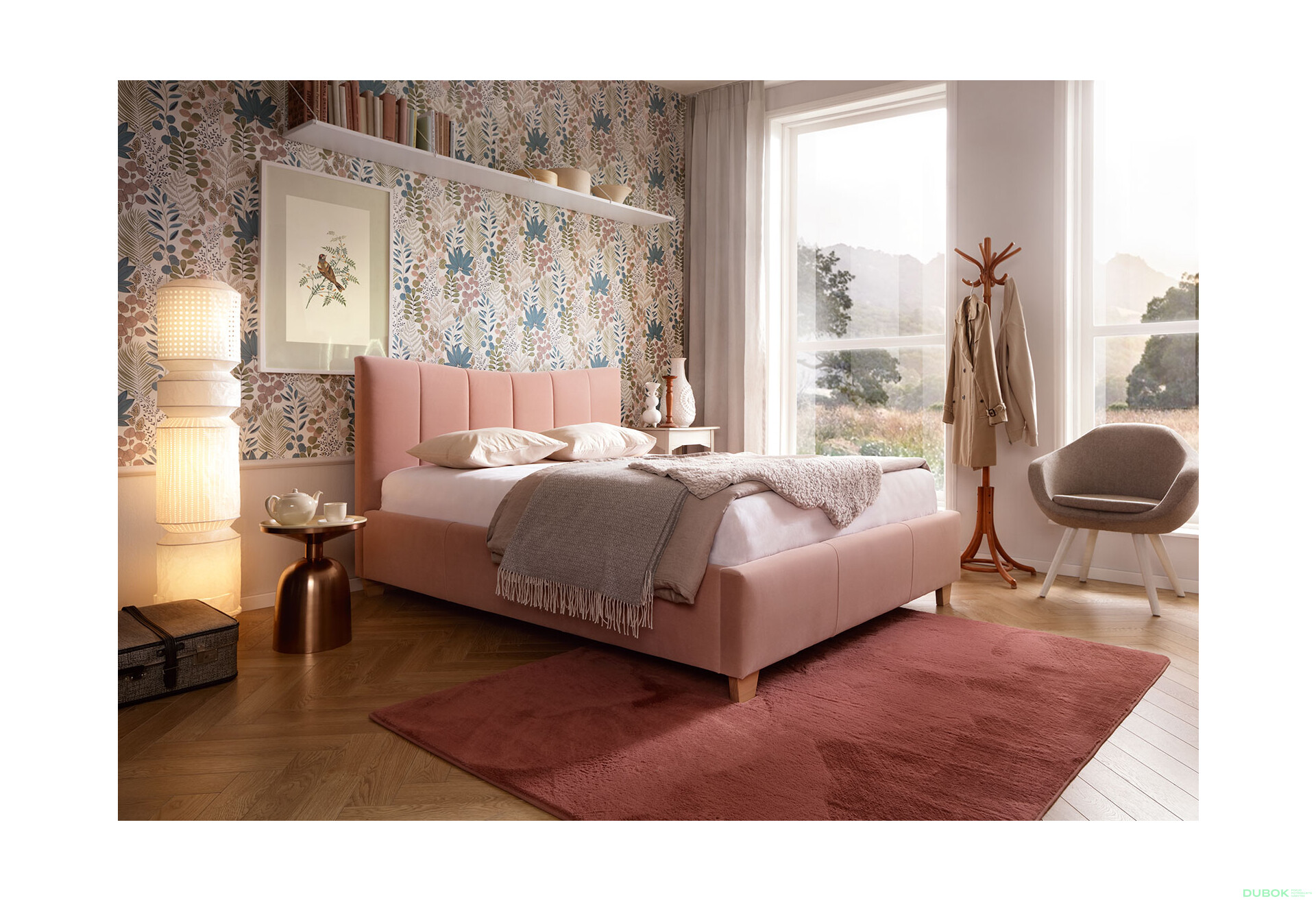 - Materiál. Použitý zamatový materiál je nielen príjemný na dotyk, ale aj odolný, čo zaručuje dlhú životnosť postele.