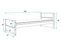 - Veľkosť. Posteľ má šírku 99 cm, výšku 68 cm a hĺbku 206 cm, čo zabezpečuje dostatočný priestor pre pohodlný spánok a pohyb v detskej izbe.