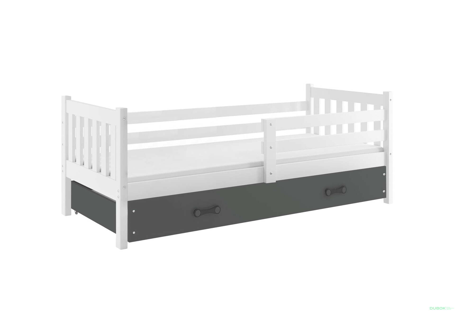 Posteľ Carino biele, zásuvka grafit 90x200 cm s roštom a matracom je ideálnym riešením pre detské izby, kde sa kladie dôraz na moderný vzhľad a funkčnosť. Jej elegantný biely dekor v kombinácii s praktickou grafitovou zásuvkou ponúka nielen štýlový dizajn, ale aj efektívne využitie priestoru. Posteľ je vyrobená z kvalitnej borovice, čo zaručuje jej odolnosť a dlhú životnosť. S rozmermi 90x200 cm poskytuje dostatočný priestor na pohodlný spánok a relaxáciu. Maximálne zaťaženie na jedno lôžko je 100 kg, čo zaručuje bezpečnosť a stabilitu pre deti aj dospelých.