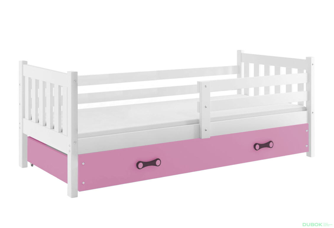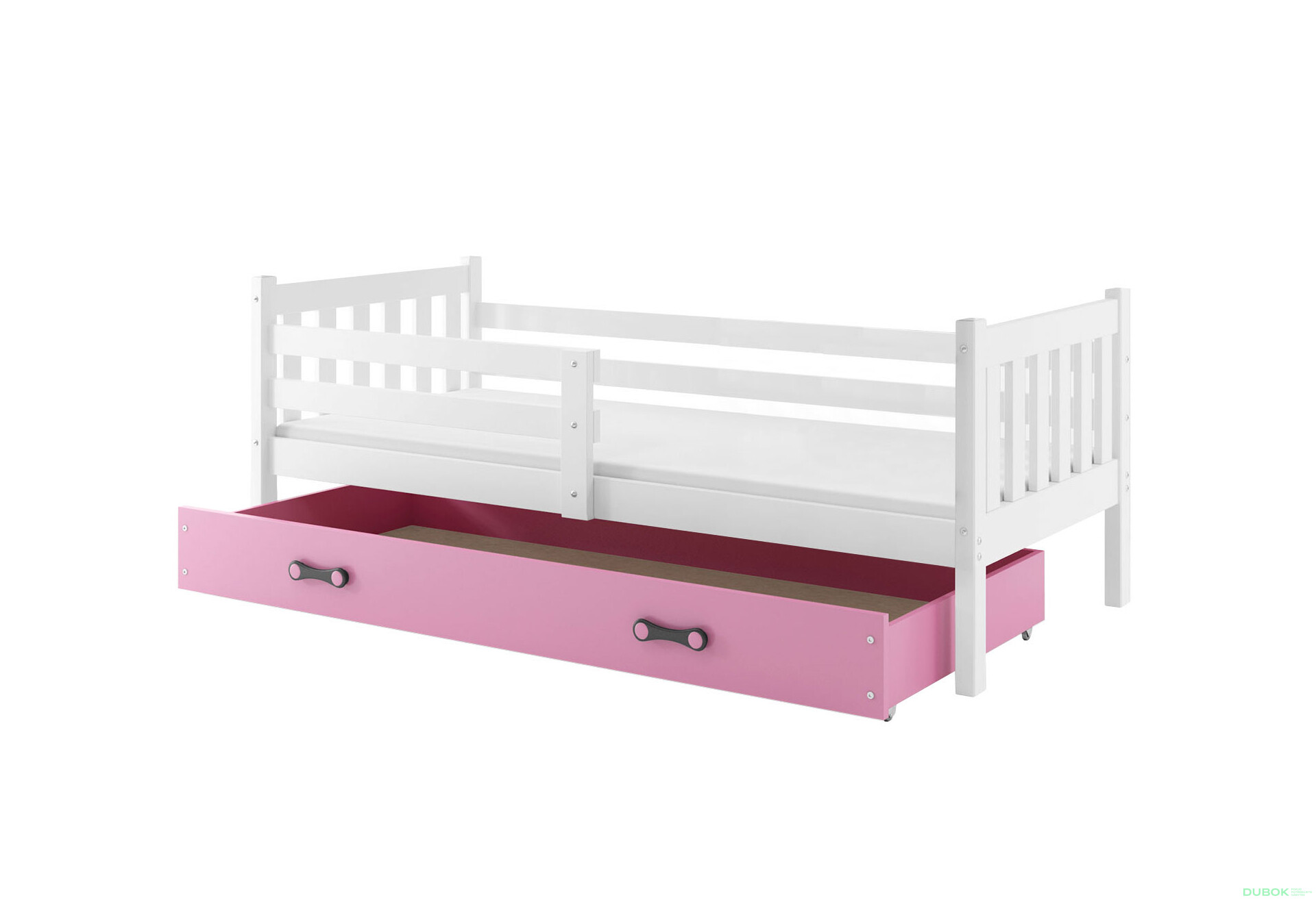 Recenzie - Posteľ Carino biele, zásuvka ružová 90x200 cm s roštom, matracom (0)