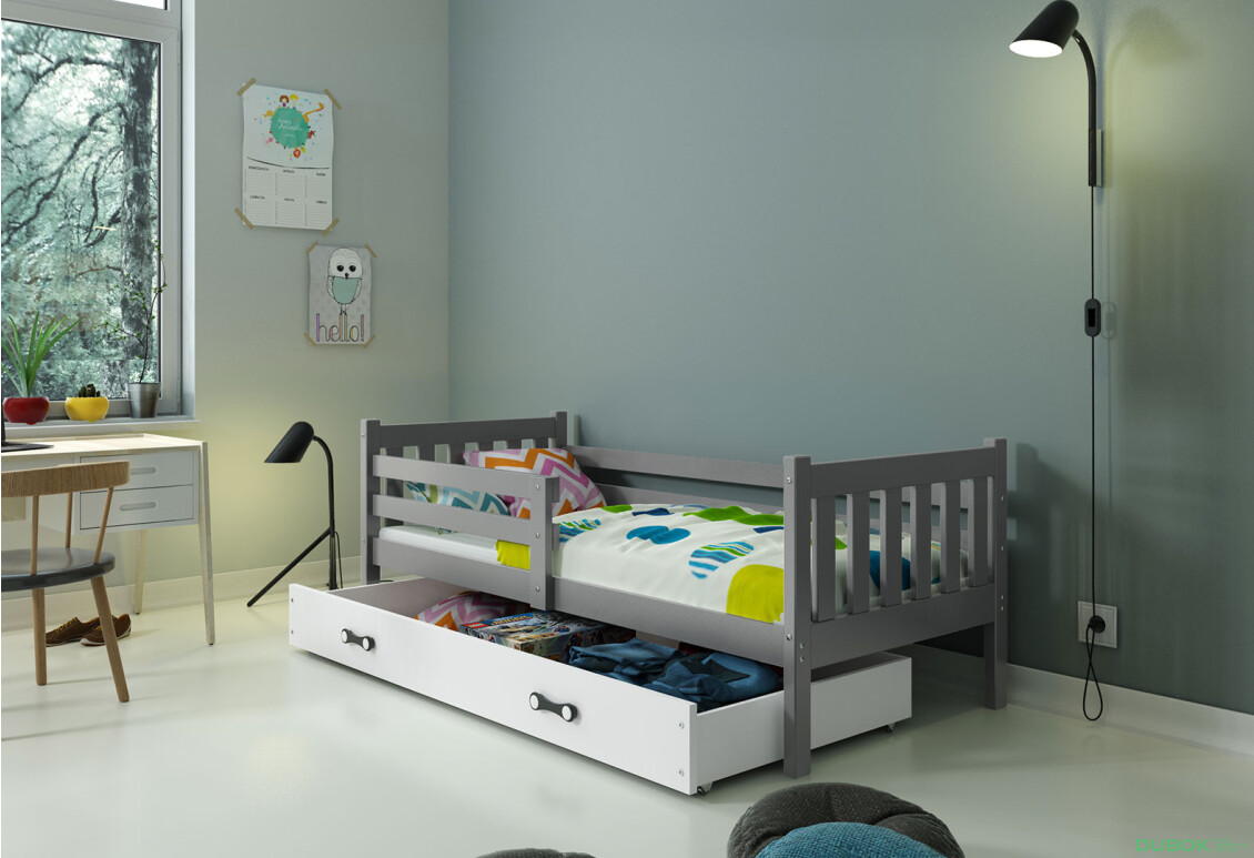 Posteľ Carino grafit s bielou zásuvkou je ideálnym riešením pre detské izby, kde sa kladie dôraz na moderný vzhľad a funkčnosť. S rozmermi 90x200 cm ponúka dostatok priestoru pre pohodlný spánok a relaxáciu. Je vyrobená z kvalitnej borovice, čo zaručuje jej dlhú životnosť a odolnosť. Lakovaná povrchová úprava dodáva posteli elegantný vzhľad a chráni ju pred poškodením. S maximálnym zaťažením 100 kg je táto posteľ vhodná pre deti aj dospelých. Vďaka praktickej výsuvnej zásuvke je možné efektívne využiť priestor na uskladnenie hračiek alebo iných predmetov, čo prispieva k poriadku v izbe. Všetky tieto vlastnosti robia z postele Carino skvelú voľbu pre každú domácnosť, ktorá hľadá kombináciu štýlu a funkčnosti.