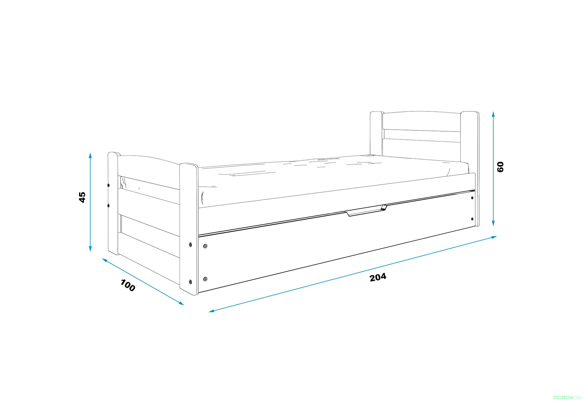 - Veľkosť. Posteľ má rozmer 90x200 cm, čo je ideálne pre jedného spáča a poskytuje dostatočný priestor na pohodlný spánok.