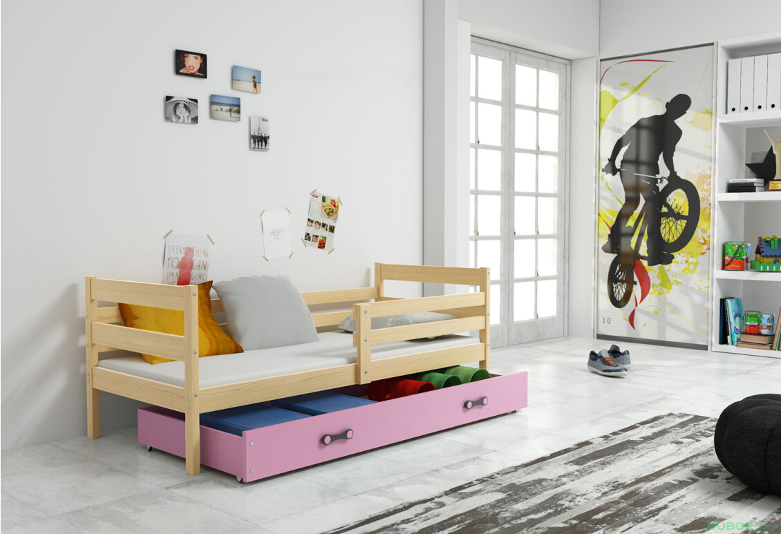 Recenzie - Posteľ Eryk borovica, zásuvka ružová 90x200 cm s roštom, matracom (0)