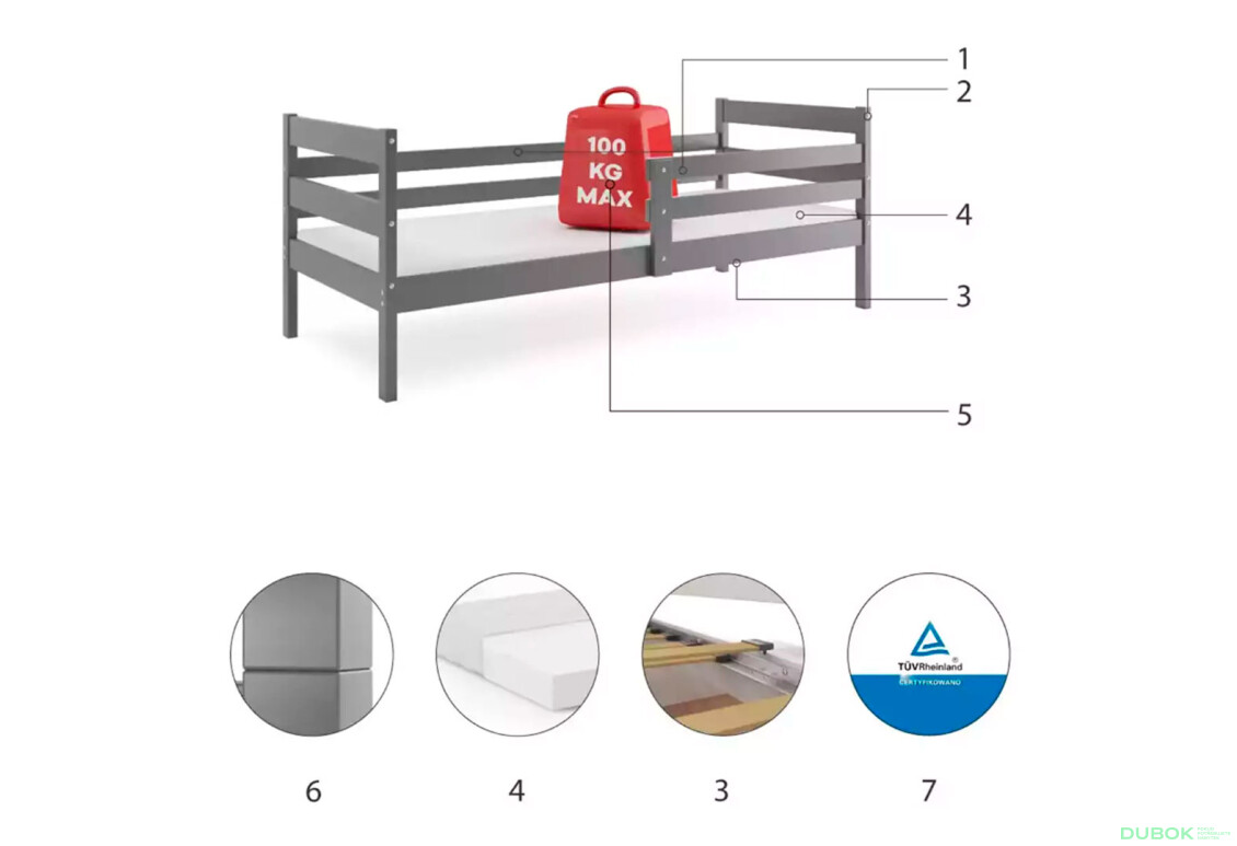 - Veľkosť. Posteľ má rozmer 80x190 cm, čo je ideálne pre detské izby, kde je potrebné optimalizovať priestor.