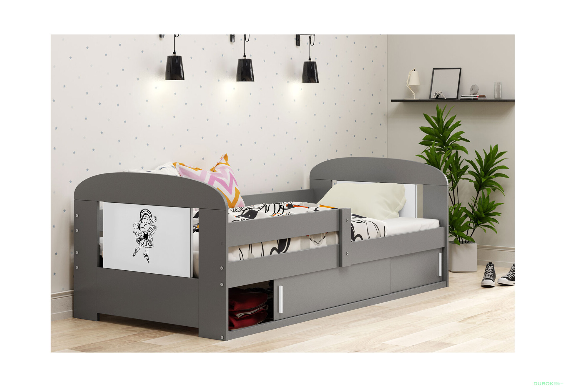 Recenzie - Posteľ Filip 1 s nálepkami grafit 80x160 cm s roštom, matracom (0)