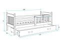 Posteľ Kubus grafit s rozmermi 90x200 cm je ideálnym riešením pre tých, ktorí hľadajú kombináciu moderného dizajnu a praktickosti. Jej elegantný grafitový dekor a detský štýl zaručujú, že sa stane skvelým doplnkom do každej izby. Posteľ je vyrobená z kvalitného borovicového dreva, čo zabezpečuje jej dlhú životnosť a odolnosť. S výsuvnou zásuvkou ponúka dostatok úložného priestoru na hračky alebo posteľnú bielizeň, čím pomáha udržiavať poriadok v detskej izbe. Rám postele je dodávaný s roštom a matracom, čo zaručuje pohodlný spánok a podporu pre vaše telo. Maximálne zaťaženie na jedno lôžko je 100 kg, čo zabezpečuje bezpečnosť a stabilitu pri používaní.