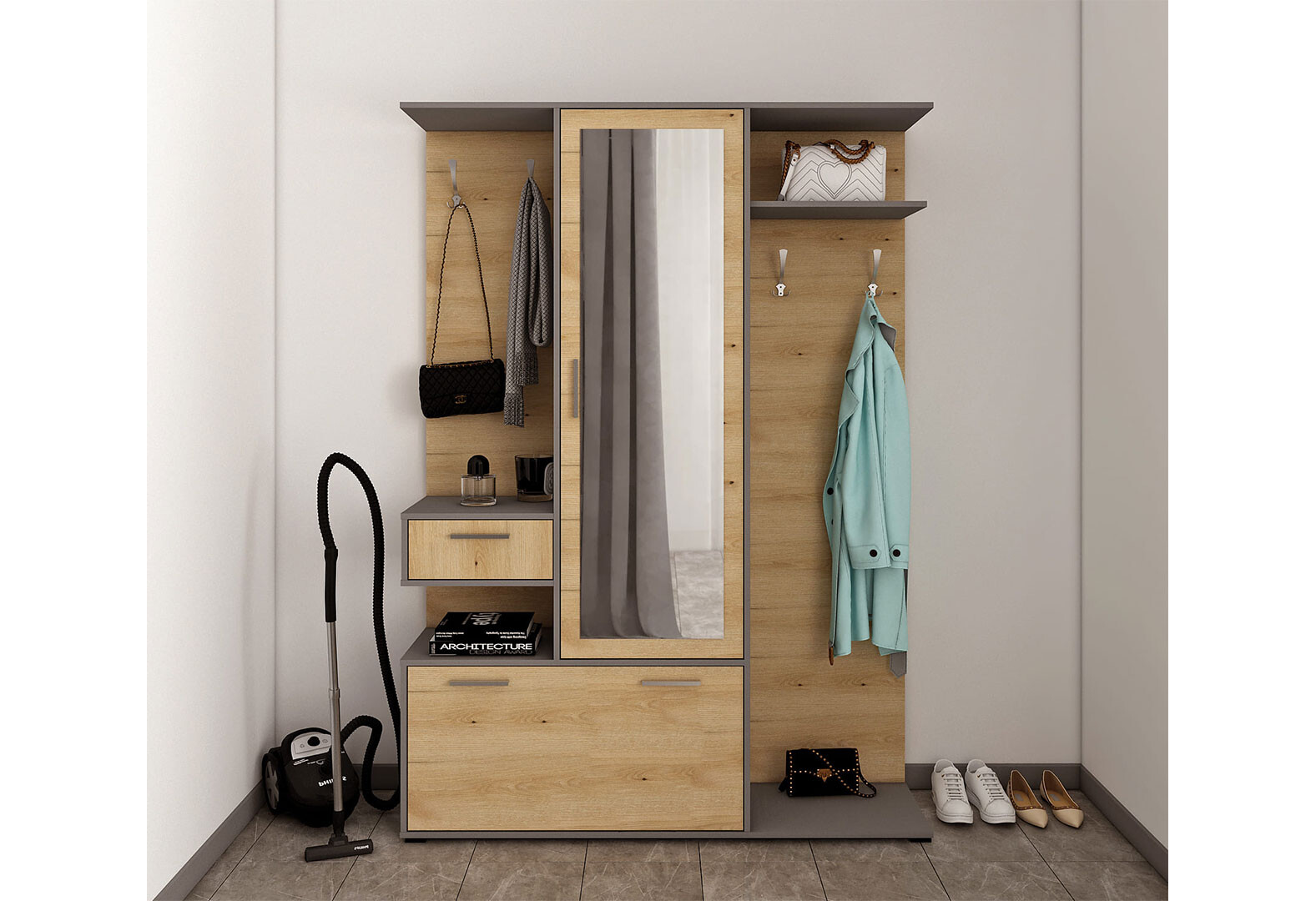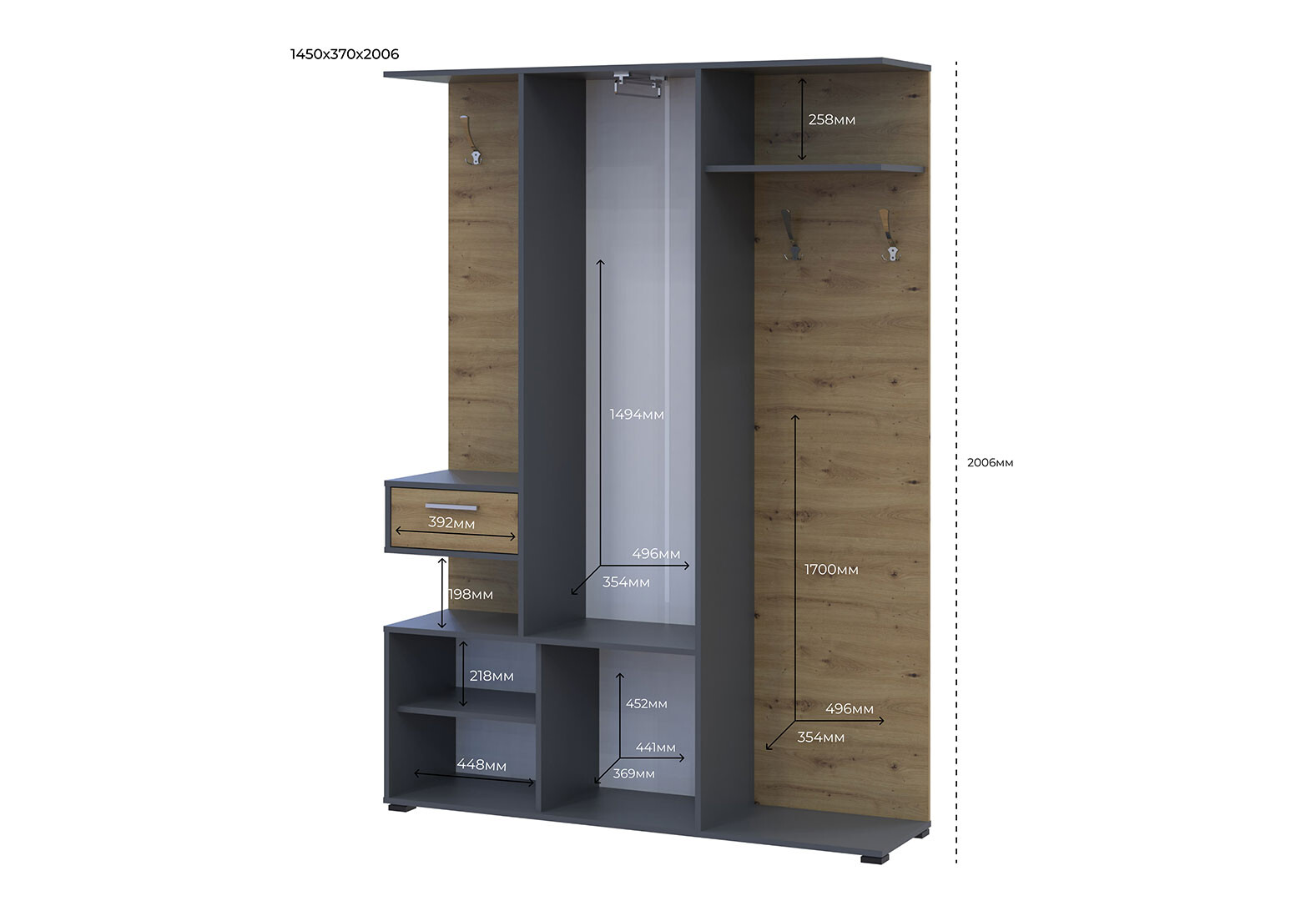 Predsieňová zostava Finch 145 cm Grafit / Dub artisan