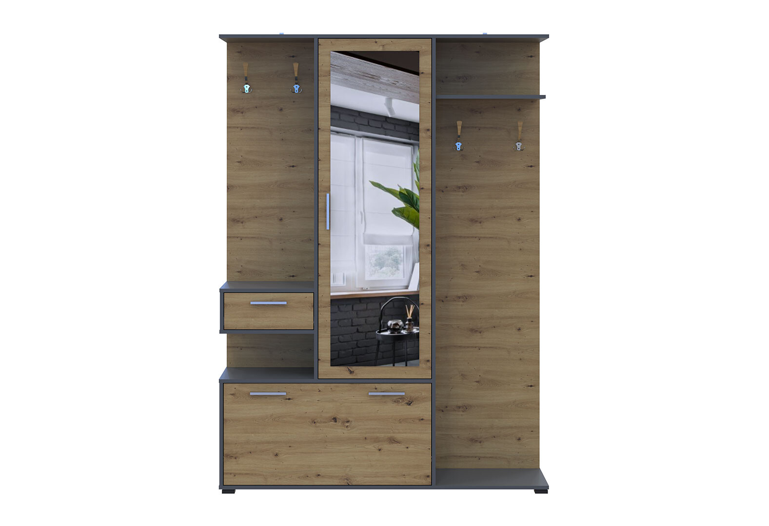 Fotografia 6 - Predsieňová zostava Finch 145 cm Grafit / Dub artisan