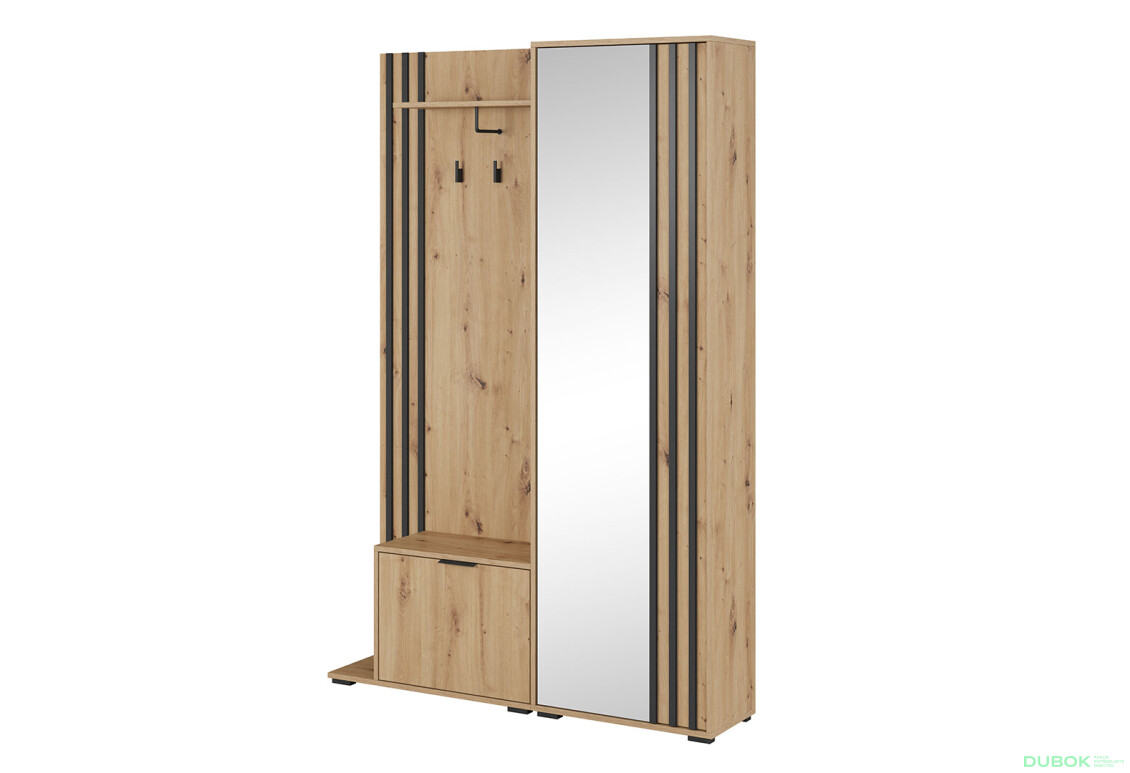 - Predsieňová zostava Nelly artisan / lamella čierna, 1 ks – 131.00 cm x 192.00 cm x 40.00 cm.
