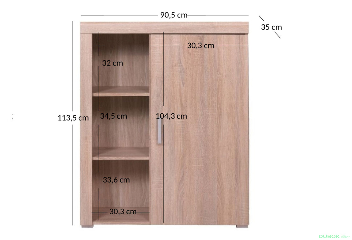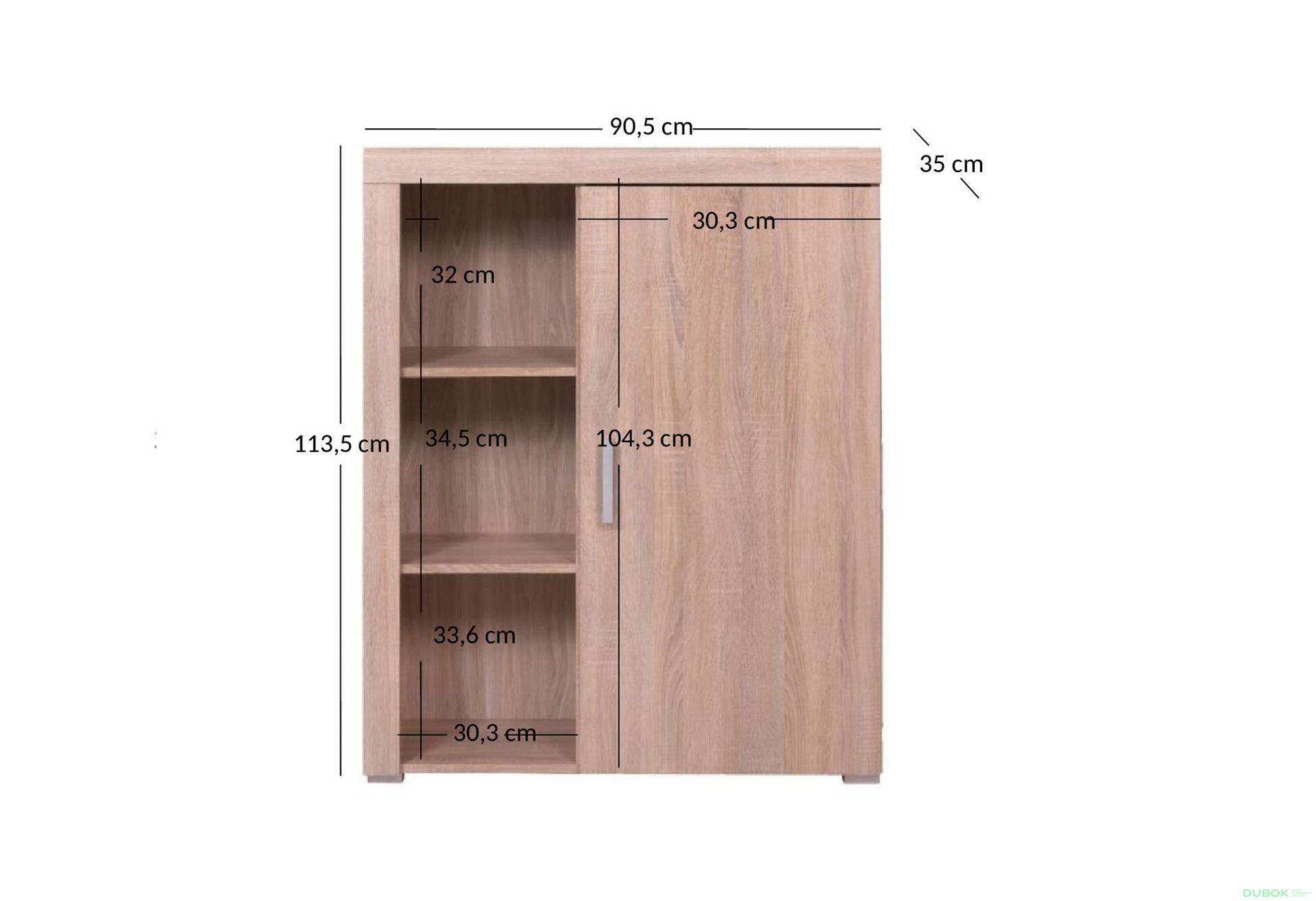 - Praktické rozmery. S rozmermi 90 x 113 x 35 cm ponúka dostatok úložného priestoru bez toho, aby zaberalo príliš veľa miesta v miestnosti.
