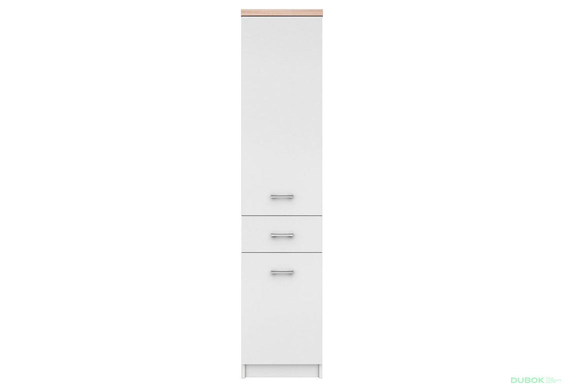 Regál 2d1s biely Top Mix je moderný a praktický kus nábytku, ktorý sa skvele hodí do každého interiéru. S rozmermi 40 cm na šírku, 183 cm na výšku a 33 cm na hĺbku ponúka dostatok priestoru na uskladnenie kníh, dekorácií alebo osobných predmetov. Uzavretý vzhľad knižnice zabezpečuje, že vaše veci budú chránené pred prachom a zároveň vytvára elegantný dojem. Vyrobený z kvalitnej laminovanej drevotriesky, tento regál je nielen esteticky príjemný, ale aj odolný a ľahko udržiavateľný, čo z neho robí ideálny doplnok do moderných domácností. Plastové úchytky zaisťujú jednoduché otváranie a zatváranie dverí, pričom biely dekor dodáva nábytku nadčasový vzhľad, ktorý sa hodí k rôznym štýlom zariadenia.