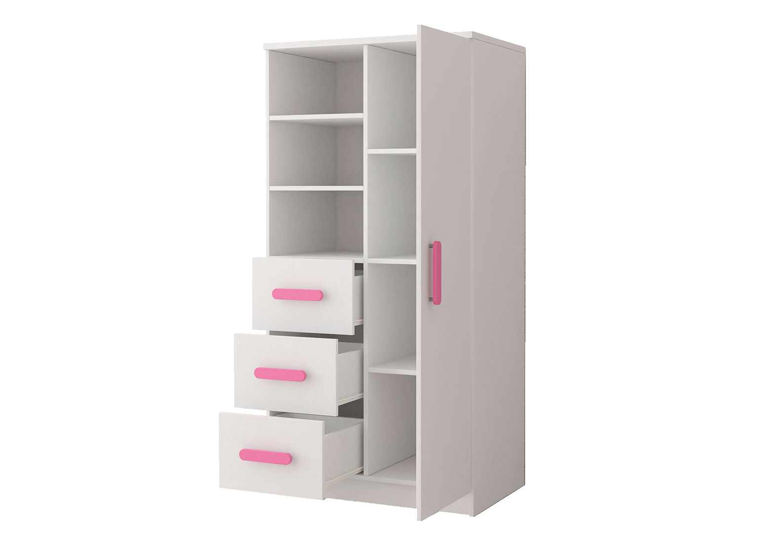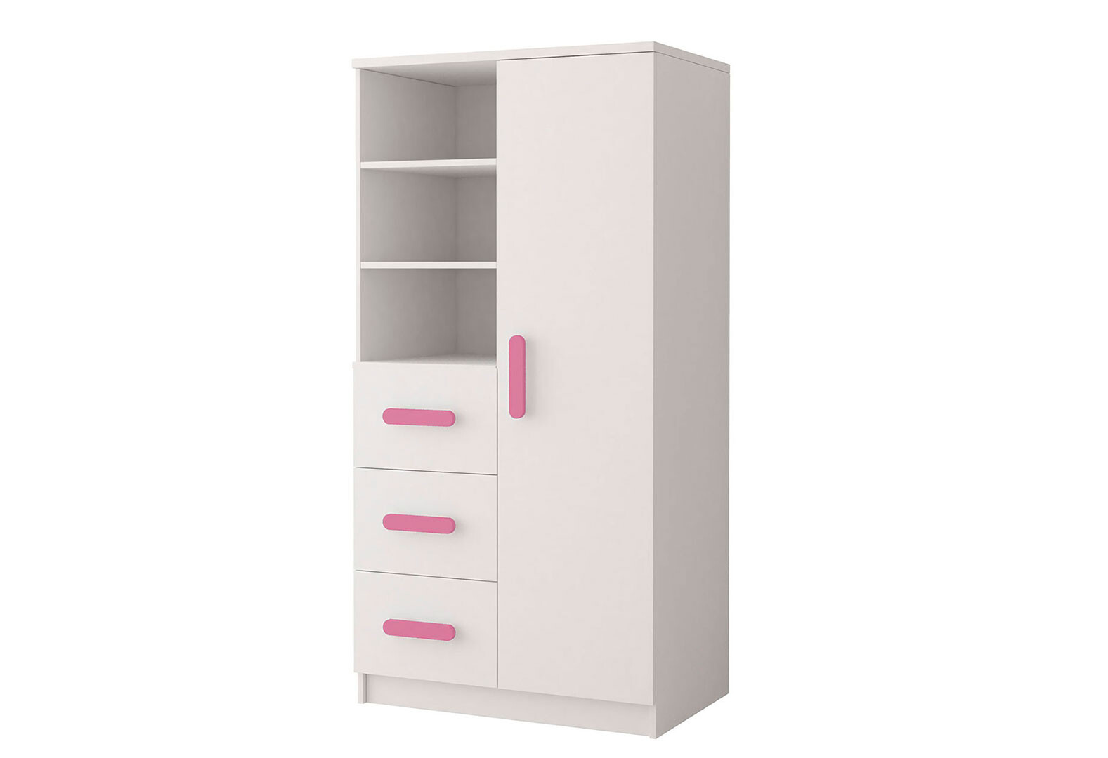 Regál 80 3S1D Šmyk biela, úchytky ružový Idczak meble
