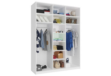 - Typ šatníkovej skrine. 3D dizajn poskytuje optimálne rozloženie priestoru a umožňuje efektívne usporiadanie vašich vecí, čím zjednodušuje ich prehľadávanie.