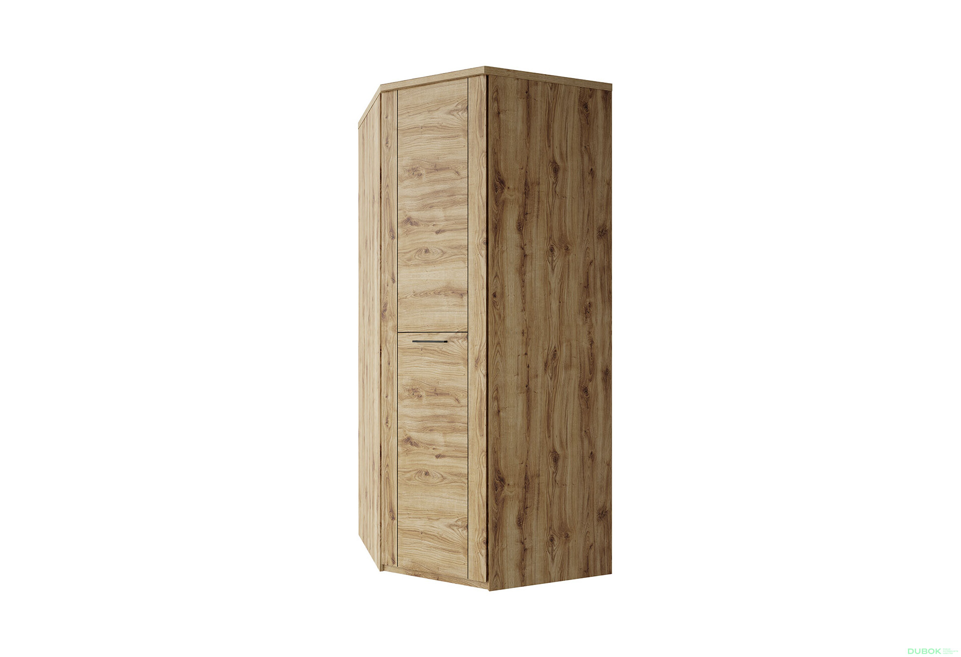 Rohová skriňa jednodverová Doorset v dekore dub navarra je ideálnym riešením pre tých, ktorí hľadajú praktický a štýlový nábytok do svojho domova. S rozmermi 95 cm na šírku, 210 cm na výšku a 95,4 cm na hĺbku ponúka dostatočný priestor na uskladnenie oblečenia a iných osobných vecí. Je vyrobená z kvalitnej drevotriesky, ktorá zabezpečuje jej odolnosť a dlhú životnosť. Vnútorné usporiadanie skrine je premyslené, obsahuje police a tyč na zavesenie oblečenia, čo uľahčuje organizáciu a prístup k veciam. Tento kus nábytku v vidieckom štýle dodá vášmu interiéru príjemnú atmosféru a útulnosť.