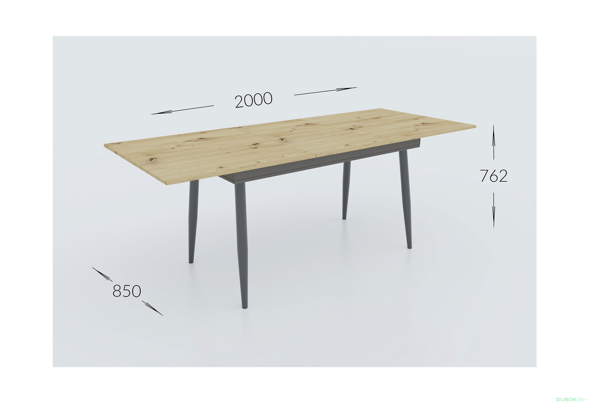 - Štýlový dekor. Kombinácia dubu artisan a antracitu dodáva stolu moderný vzhľad, ktorý sa hodí do rôznych interiérov.