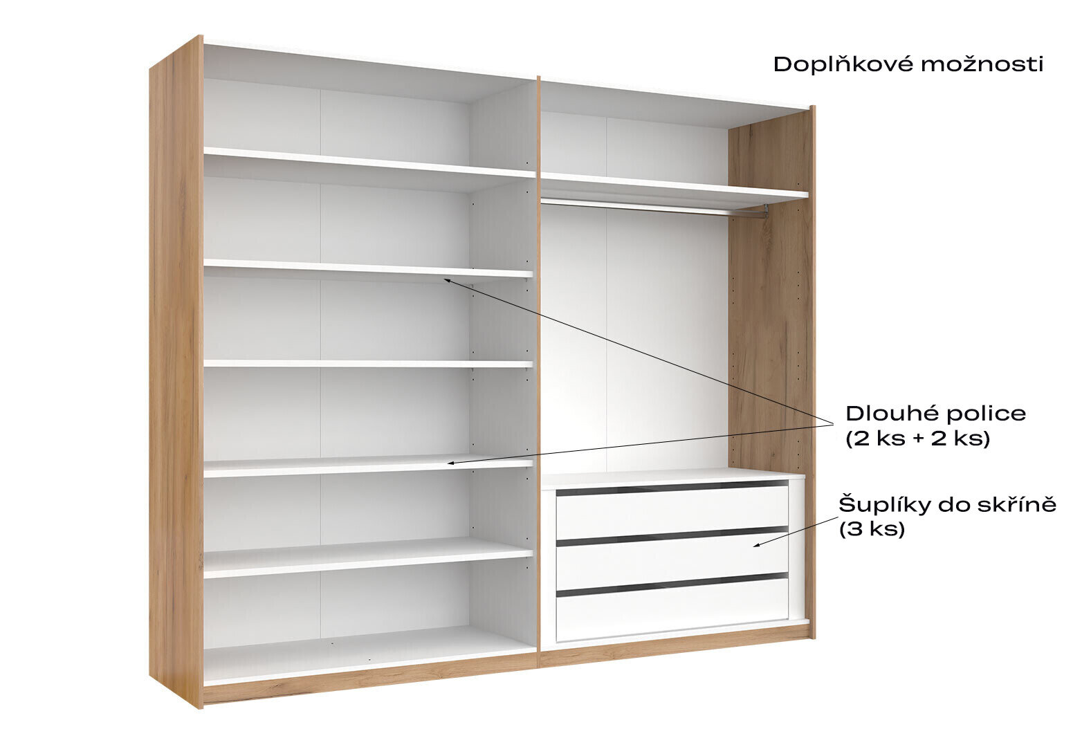 Skriňa s posuvnými dverami 2,5x2,1m (Dvere Dub Kraft/Lesklá Biela) séria N Asti