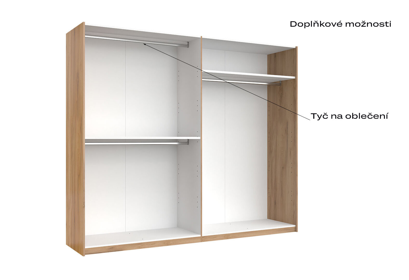- Skriňa s posuvnými dverami 2,5x2,1m (Dvere Dub Kraft/Lesklá Biela) séria N Asti