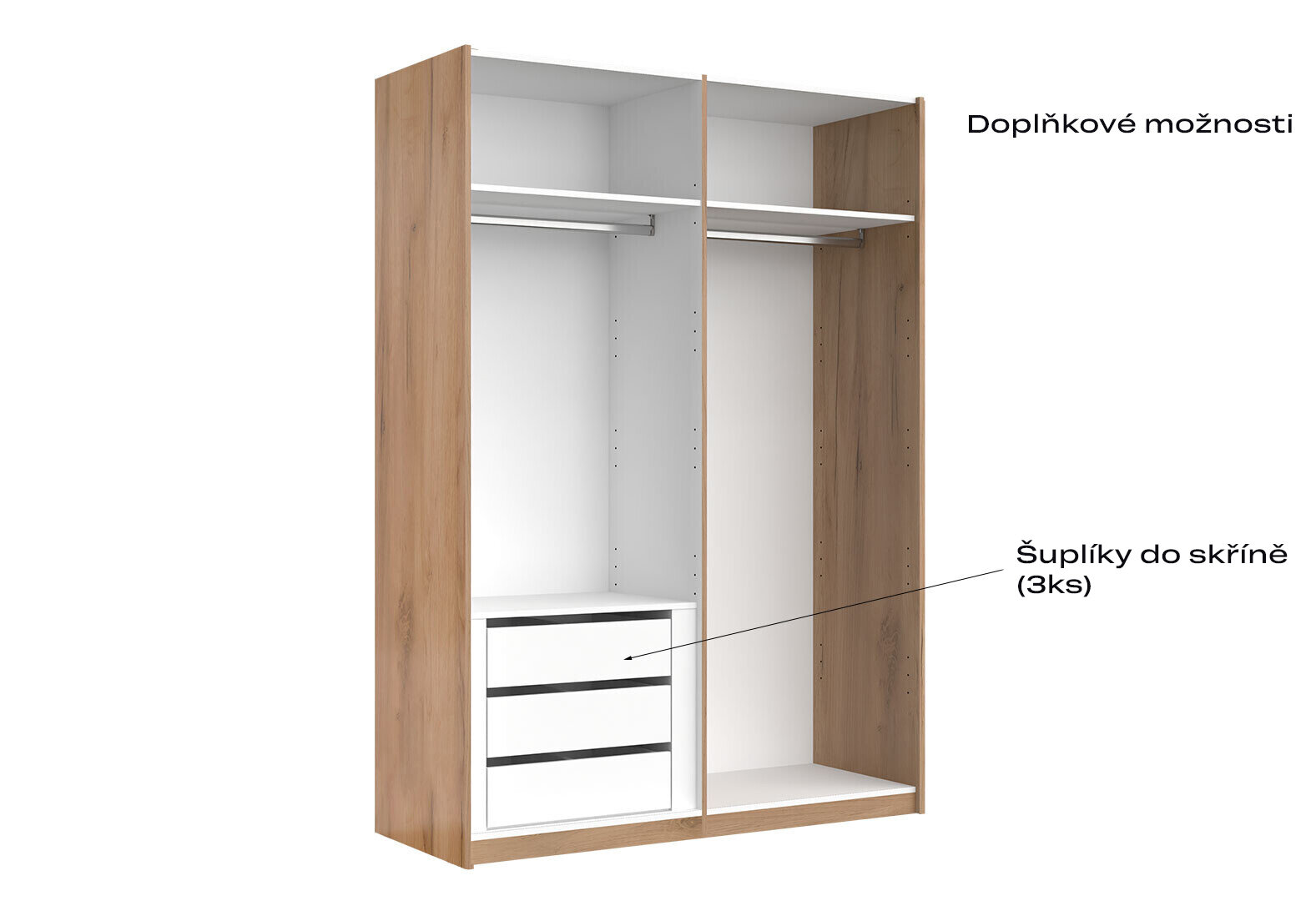 Fotografia 8 - Skriňa s posuvnými dverami 1,5x2,1m (Dvere Lesklá Biela/Zrkadlo) séria N Asti