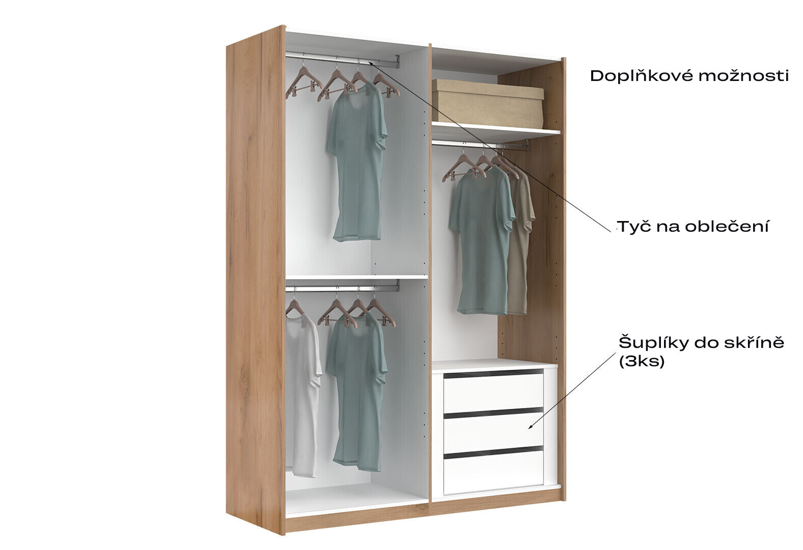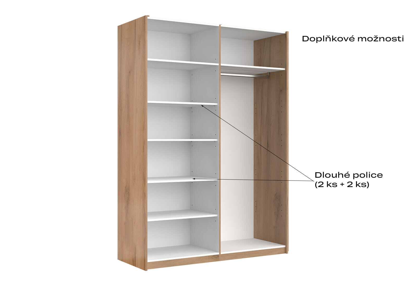 Fotografia 9 - Skriňa s posuvnými dverami 1,5x2,1m (Dvere Lesklá Biela/Zrkadlo) séria N Asti