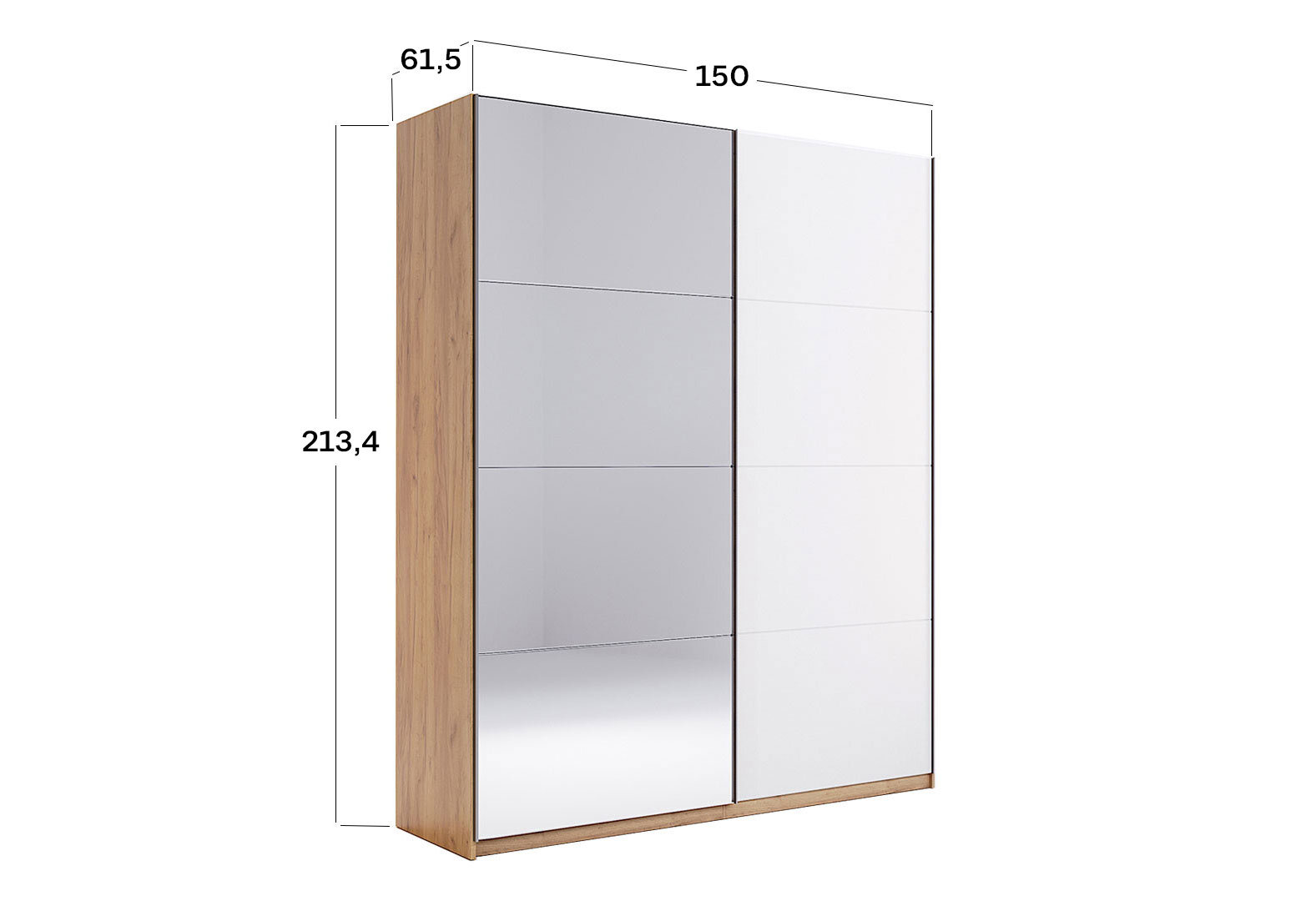 Skriňa s posuvnými dverami 1,5x2,1m (Dvere Lesklá Biela/Zrkadlo) séria N Asti