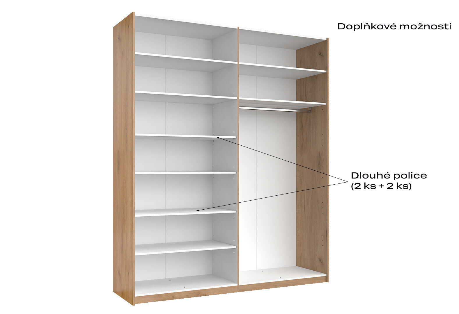 - Skriňa s posuvnými dverami 2,0x2,4m (Dvere Lesklé Biele/Zrkadlo) séria N Asti