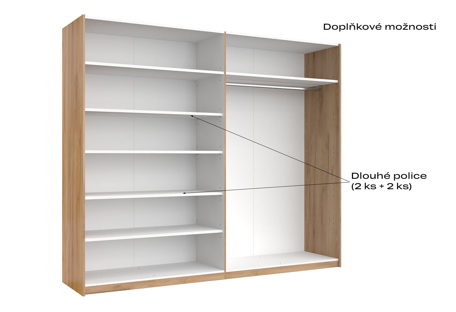 Fotografia 5 - Skriňa s posuvnými dverami 2,5x2,1m (Dvere Lesklé Biele/Zrkadlo) séria N Asti