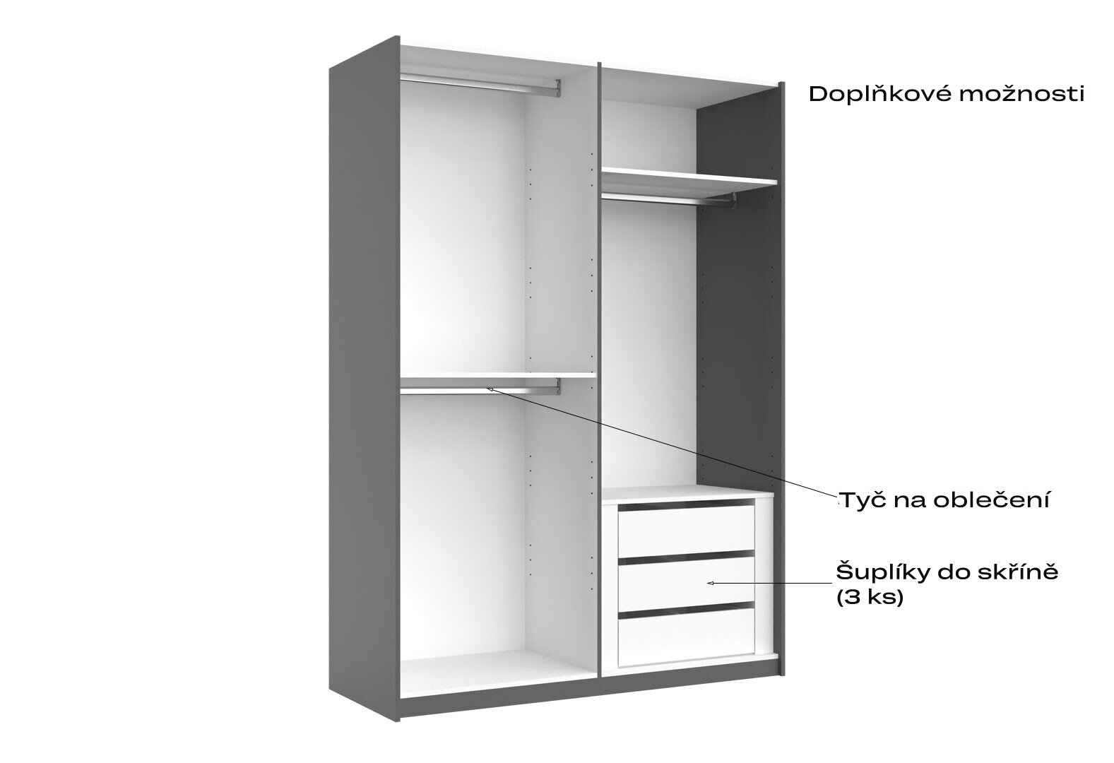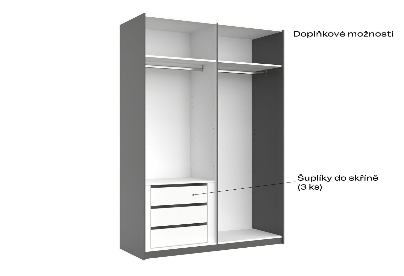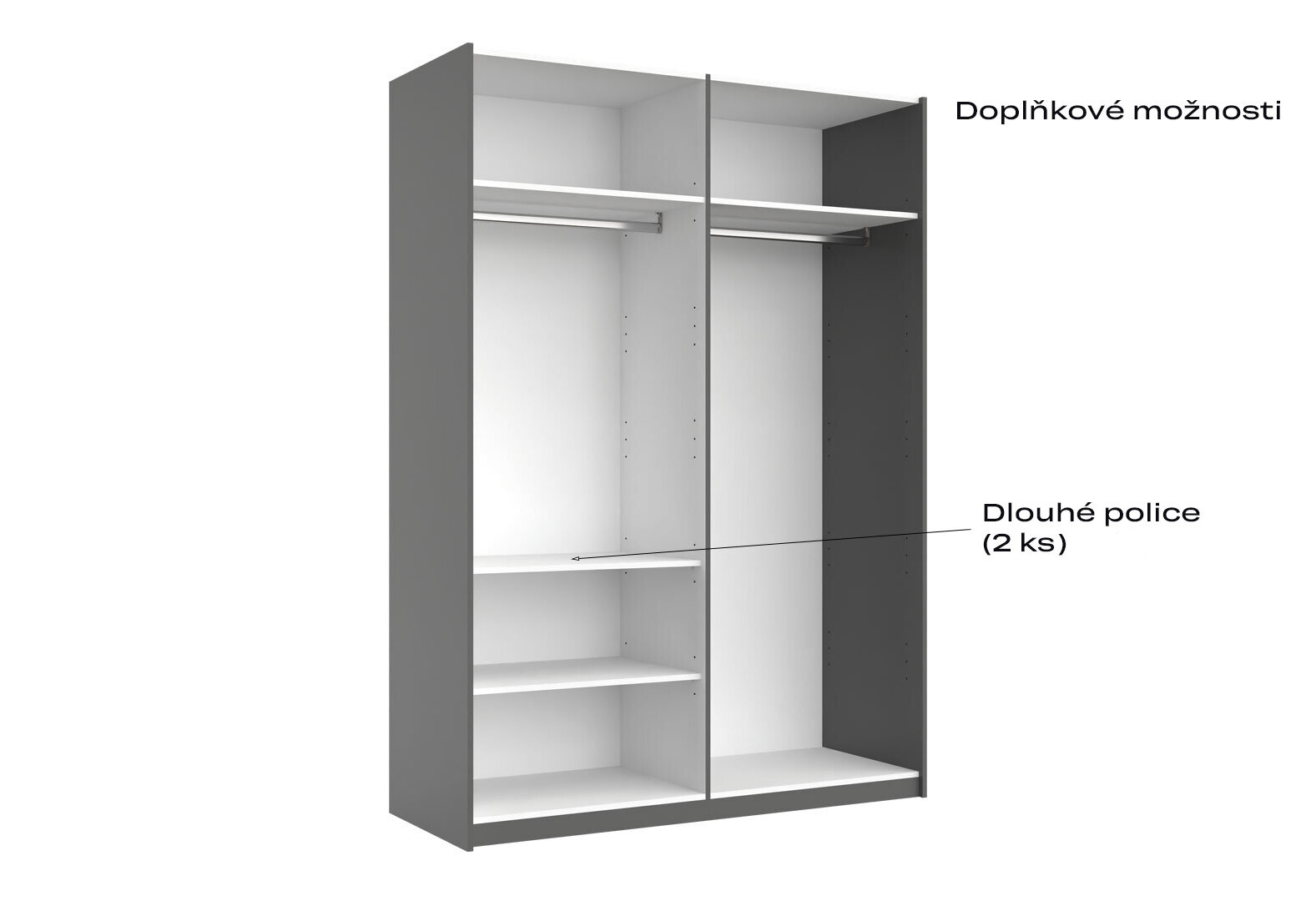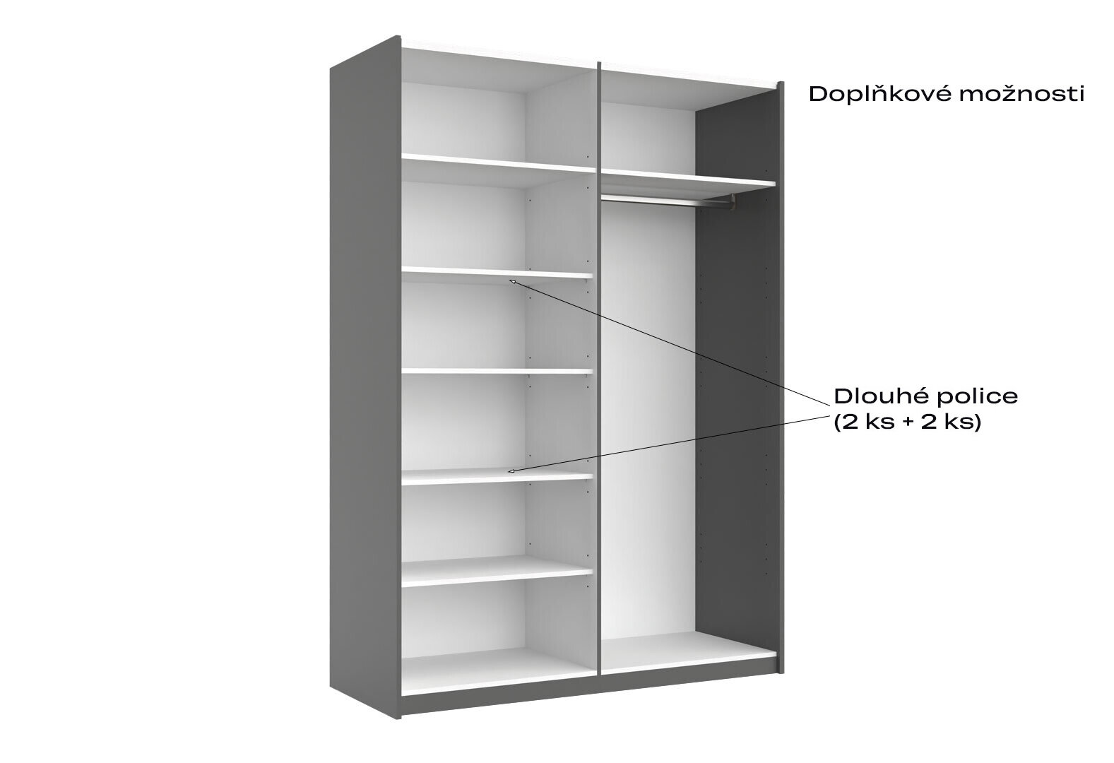 - Skriňa s posuvnými dverami 1,5x2,1m (Dvere Grafit/Zrkadlo) séria N Doni