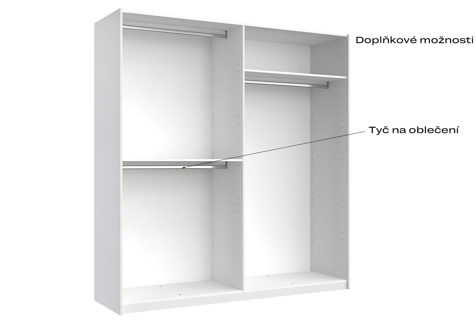 Skriňa s posuvnými dverami 2,0x2,1m (Dvere Lesklé Biele), séria N Family