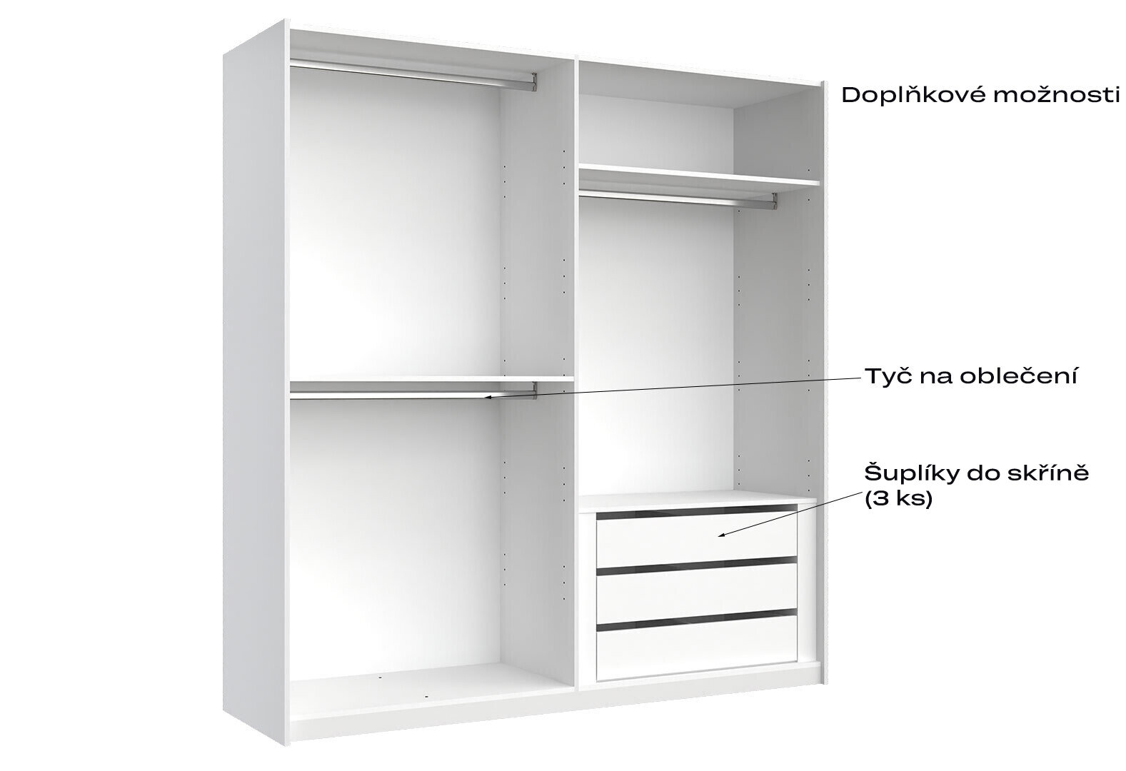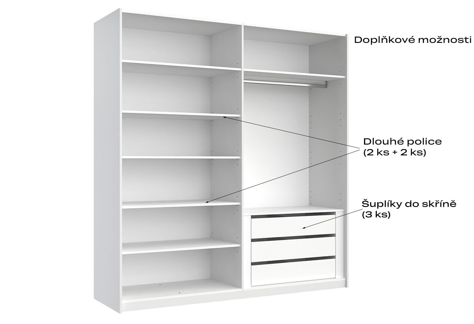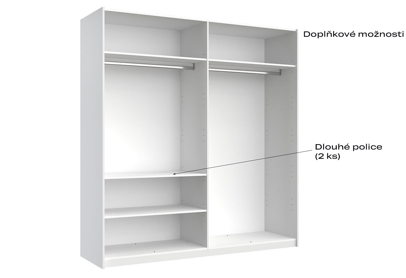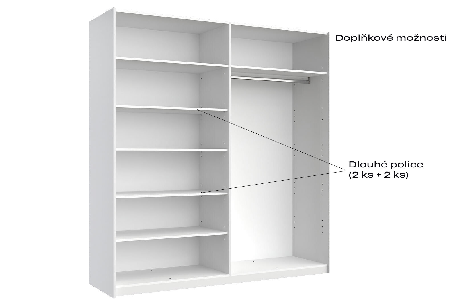 - Skriňa s posuvnými dverami 2.0x2.1m (Dvere Lesklá Biela/Zrkadlo), séria N Family