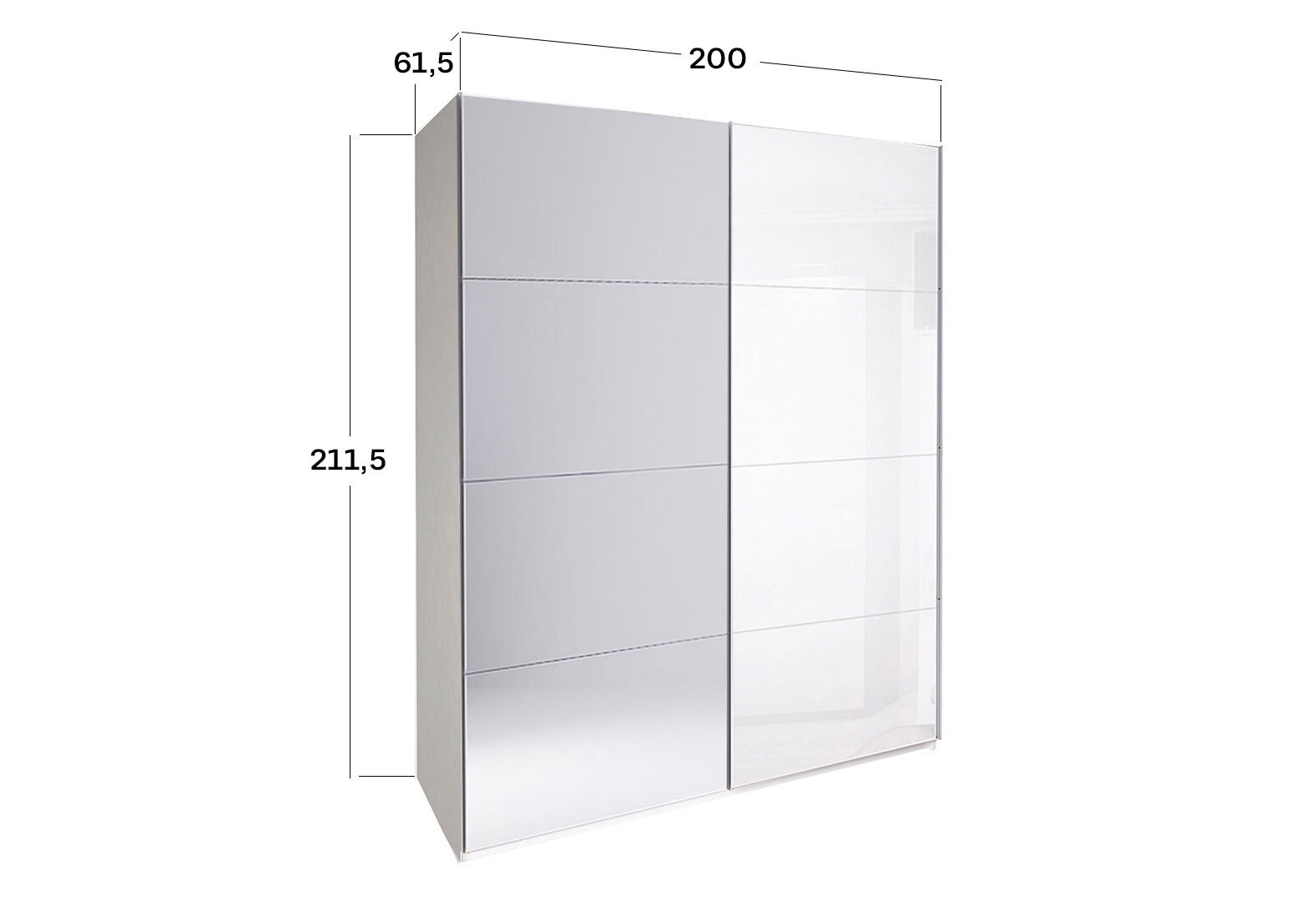 Skriňa s posuvnými dverami 2.0x2.1m (Dvere Lesklá Biela/Zrkadlo), séria N Family