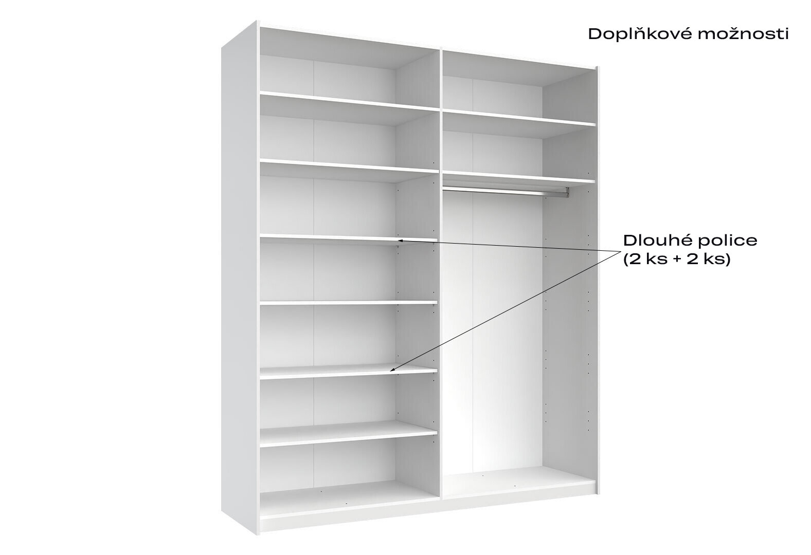 Fotografia 8 - Skriňa s posuvnými dverami 2,0x2,4m (Dvere Lesklé Biele/Zrkadlo), séria N Family