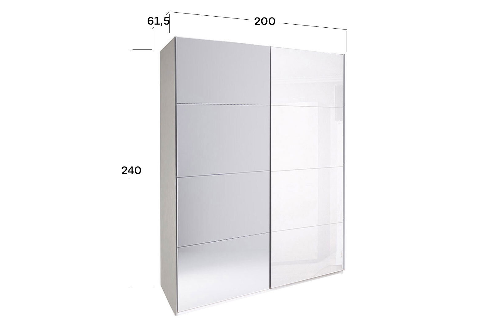 Skriňa s posuvnými dverami 2,0x2,4m (Dvere Lesklé Biele/Zrkadlo), séria N Family