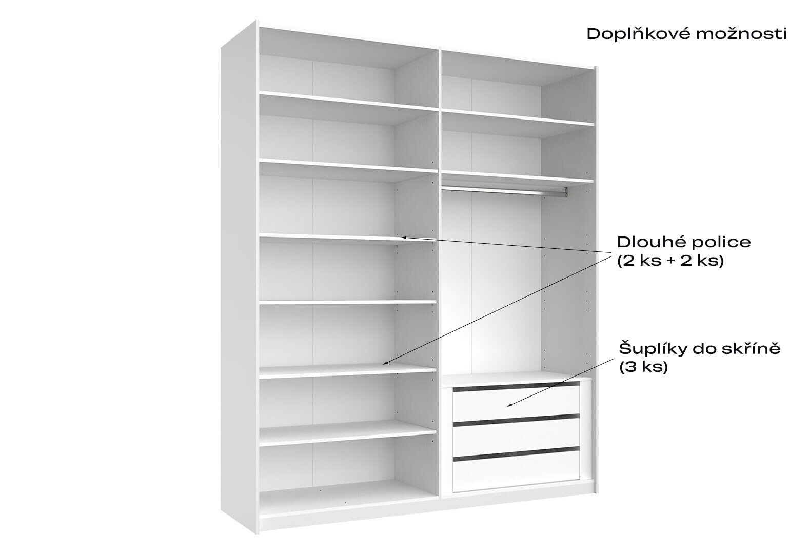 - Skriňa s posuvnými dverami 2.0x2.4 m, sivý lesk / zrkadlo Megy