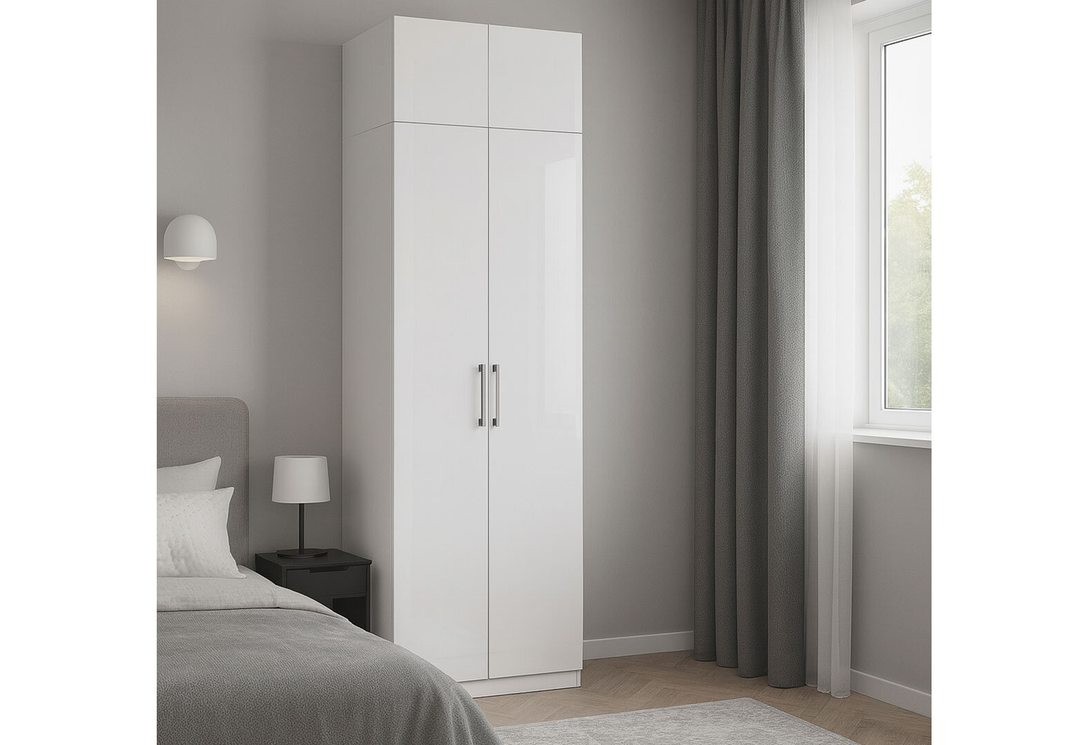 Skriňa 2dv bez zrkadiel + Nástavec 2 dv, séria N biela Family