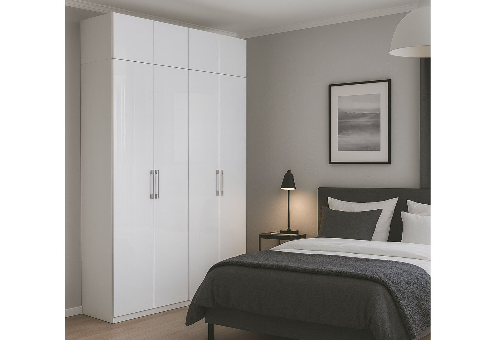 Skriňa 4dv bez zrkadiel + Antresol 4 dv, séria N biela Family