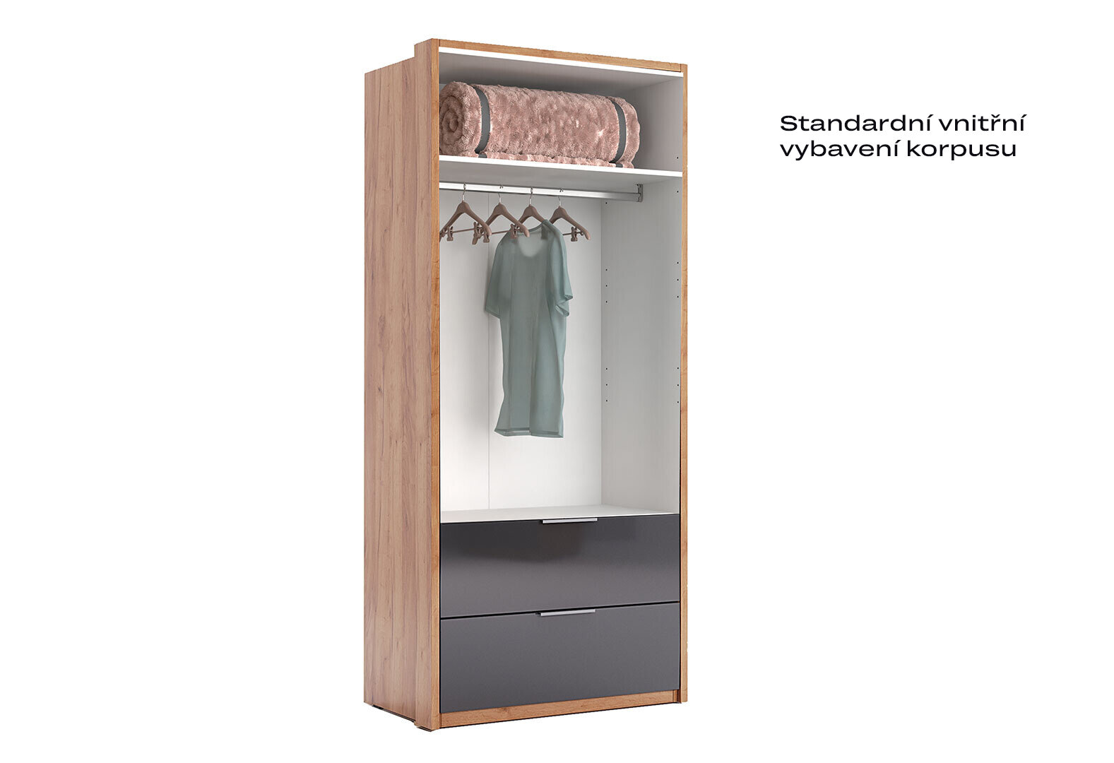 Skriňa 2dv 2šx bez zrkadiel, séria N Lava / dub kraft Luna