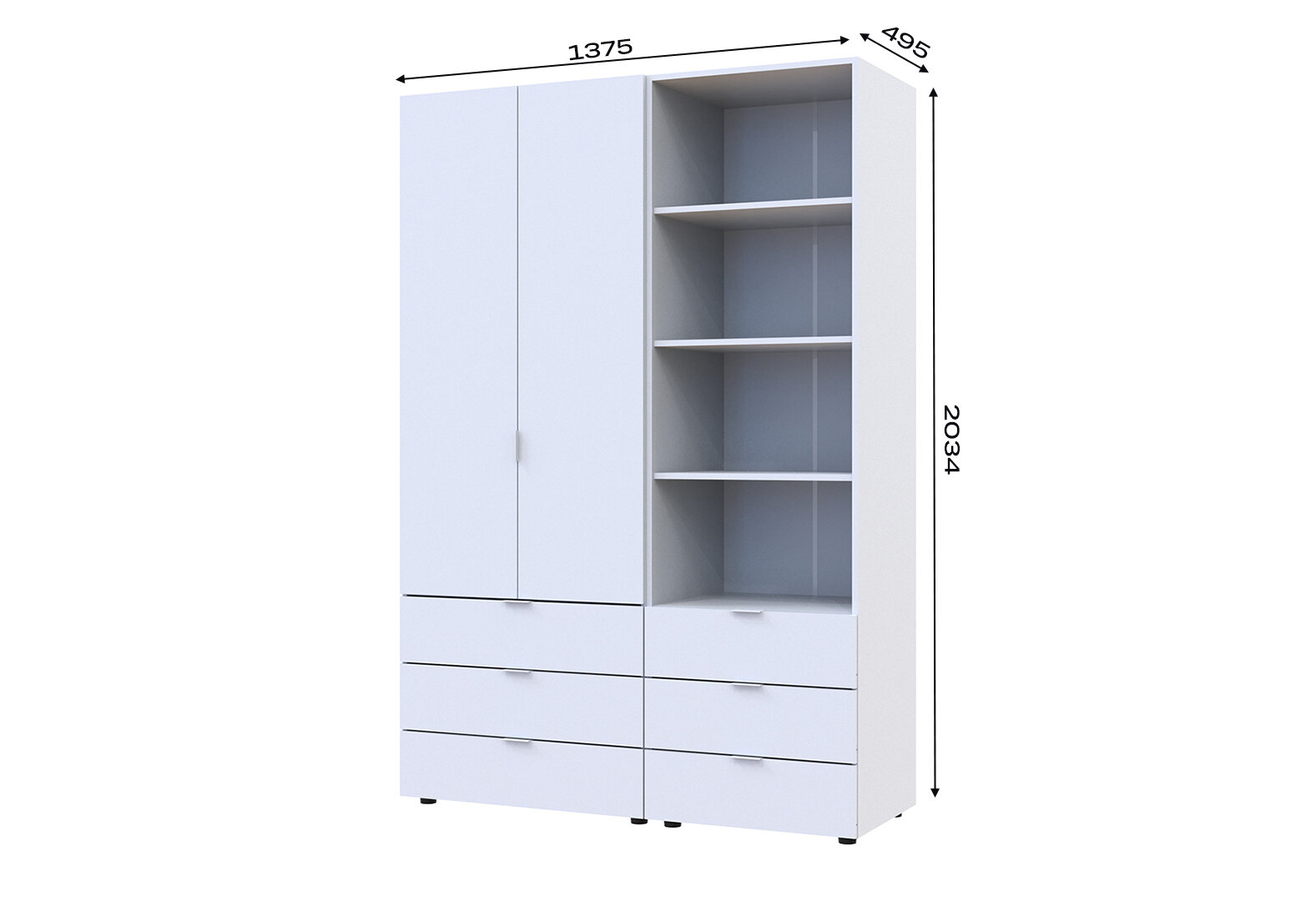 Skriňa 2D s regálom s zásuvkami Gelar 137.5 cm biely