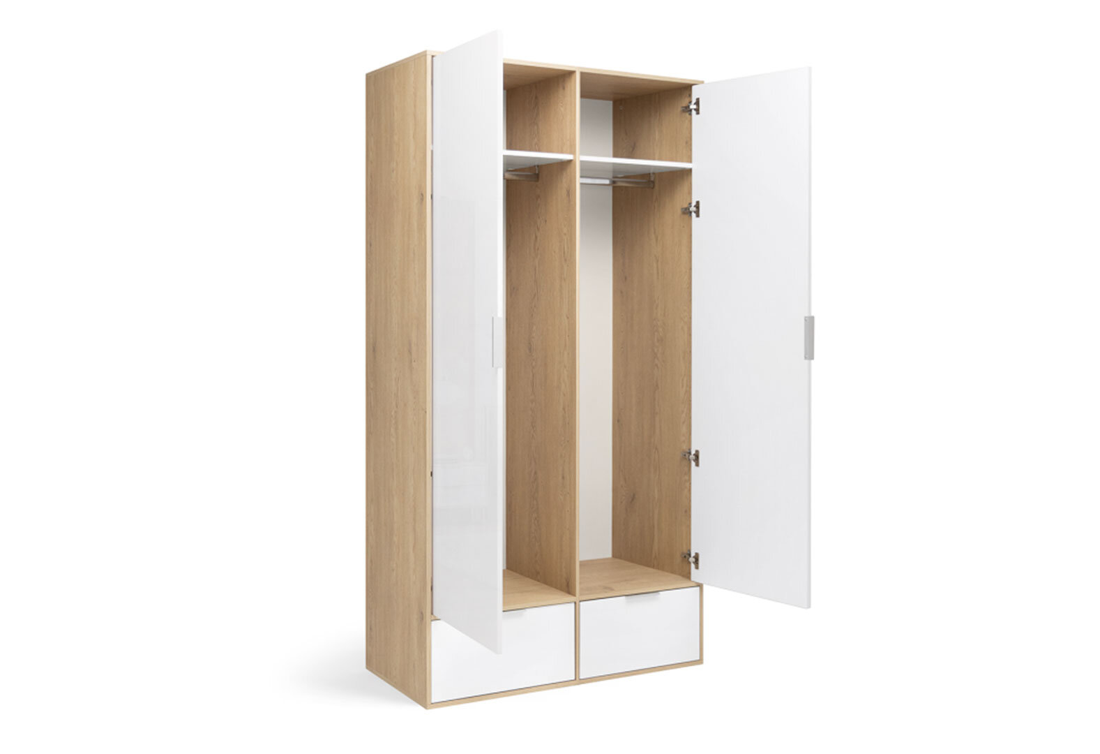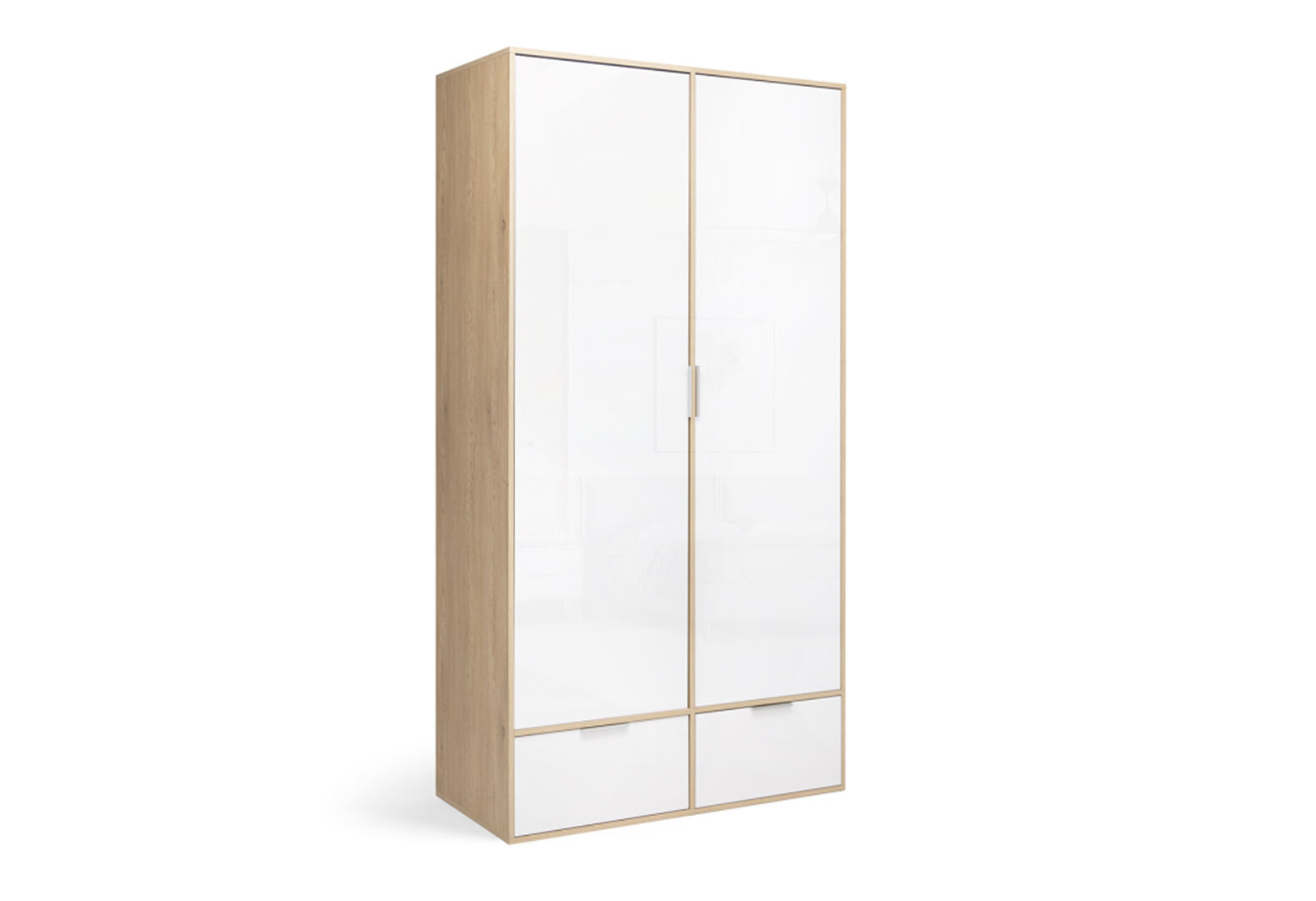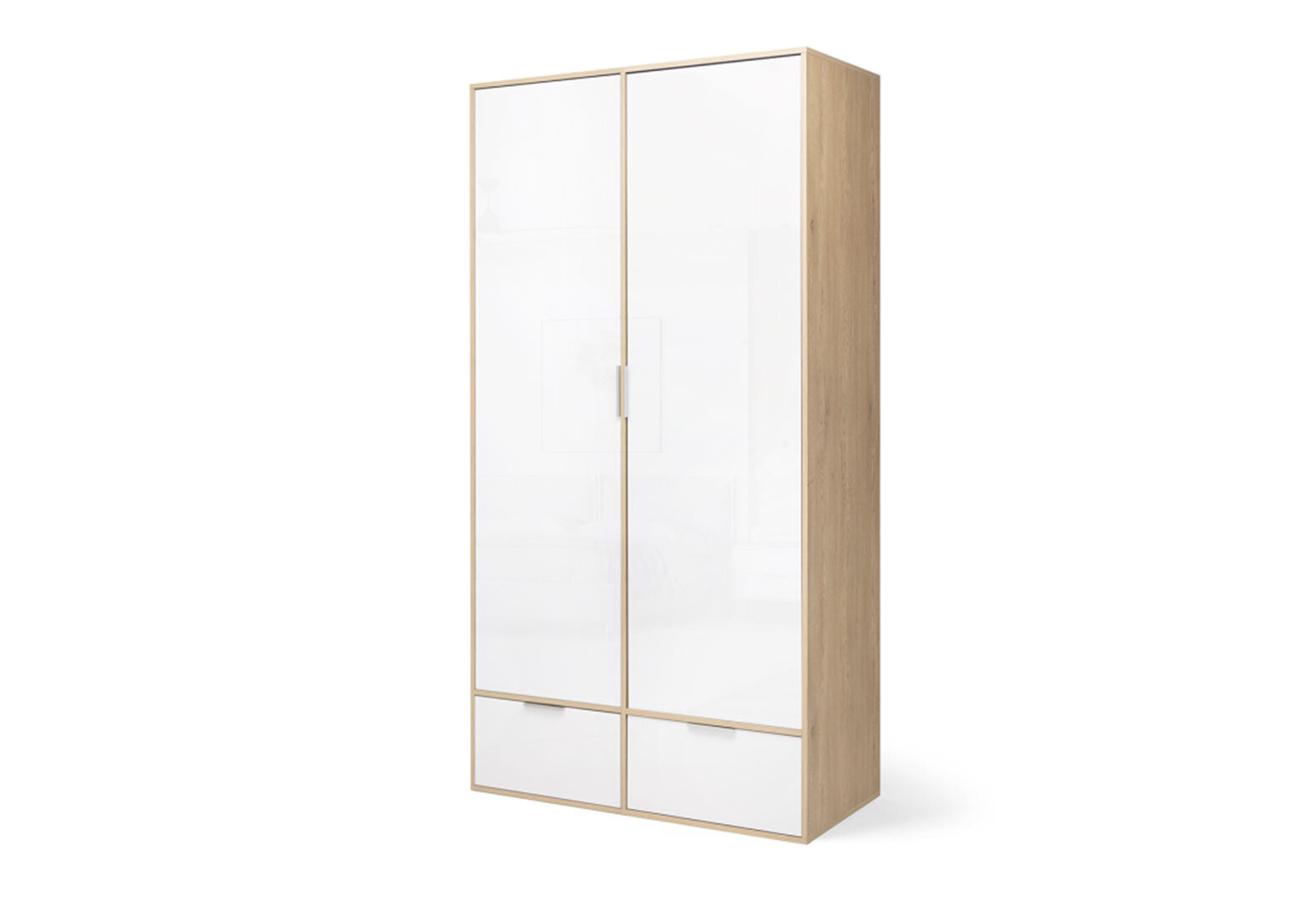 Skriňa 2dc 2šx bez zrkadiel lesklá biela / dub cremona Olívia