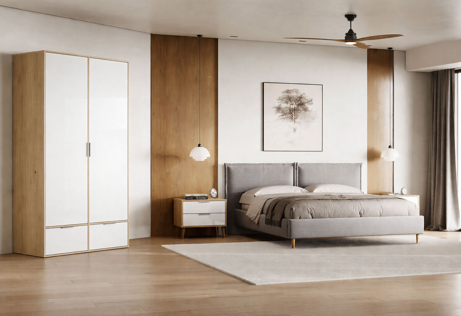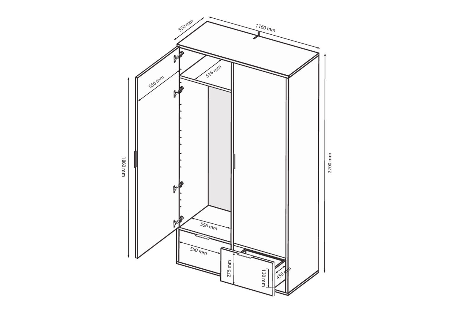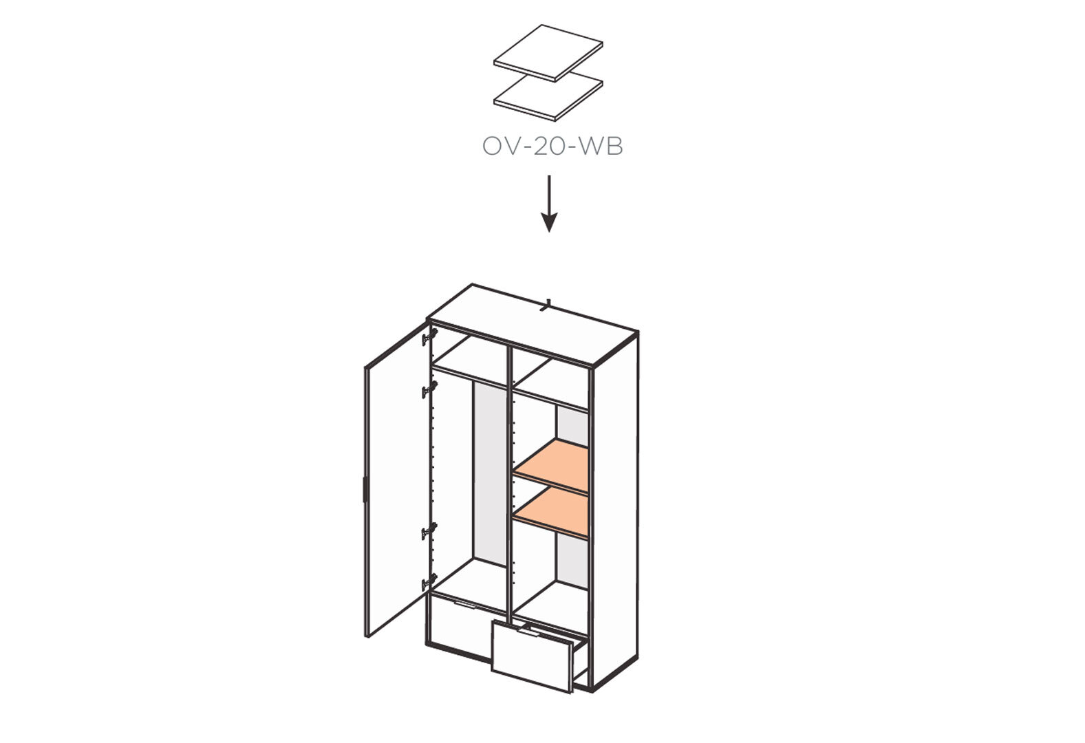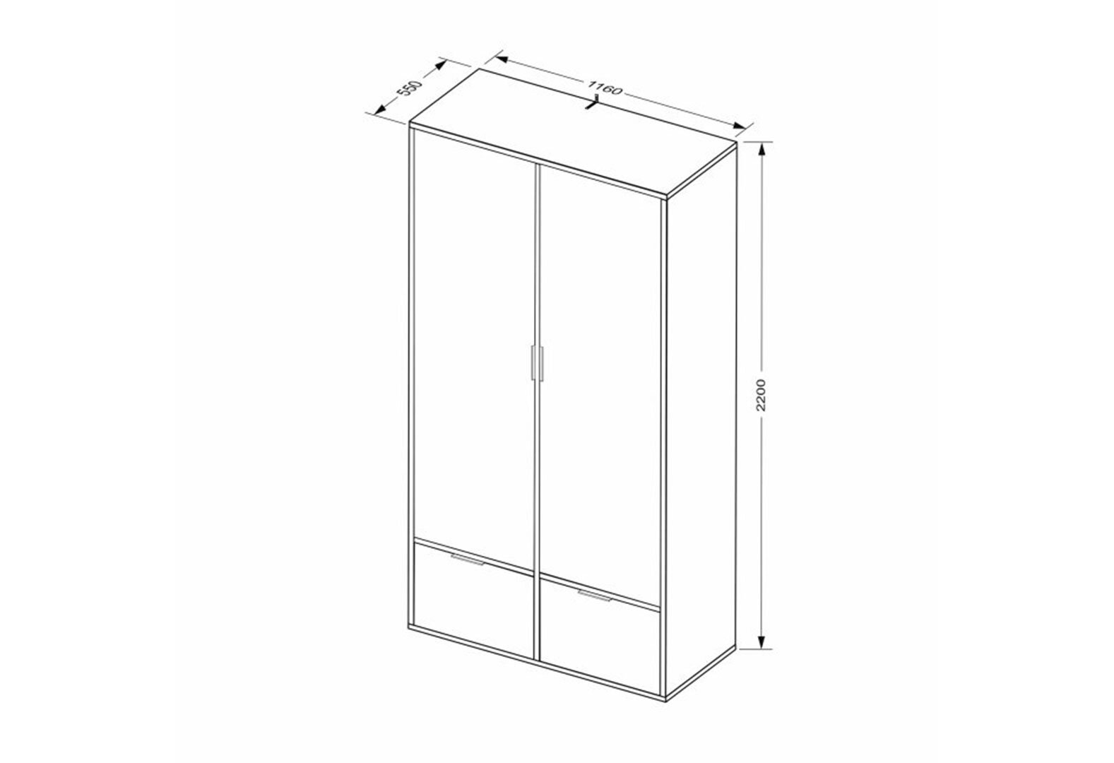 Skriňa 2dc 2šx bez zrkadiel lesklá biela / dub cremona Olívia