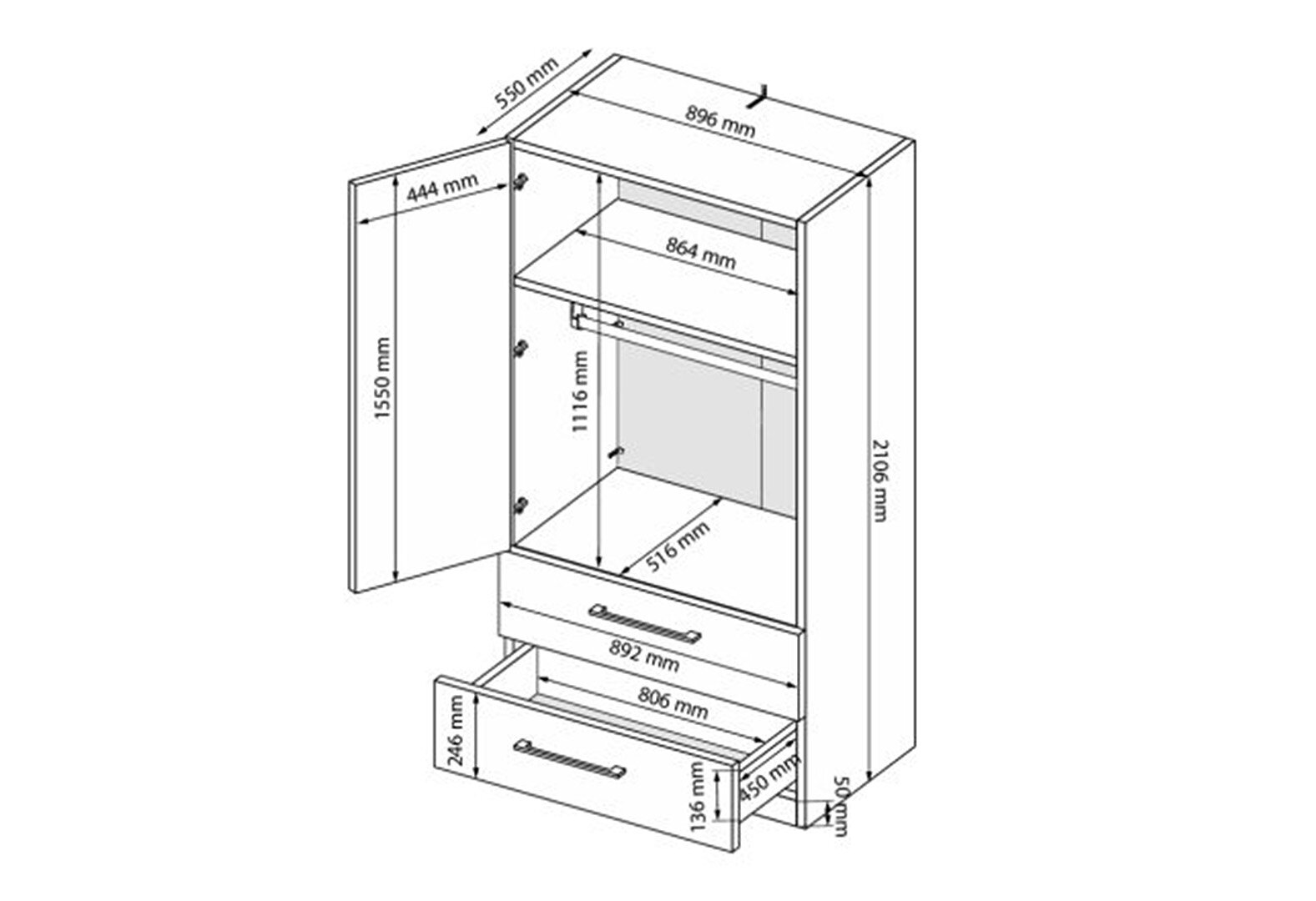 Skriňa 2dv 2šx Bez zrkadiel kašmírový lesk Lori