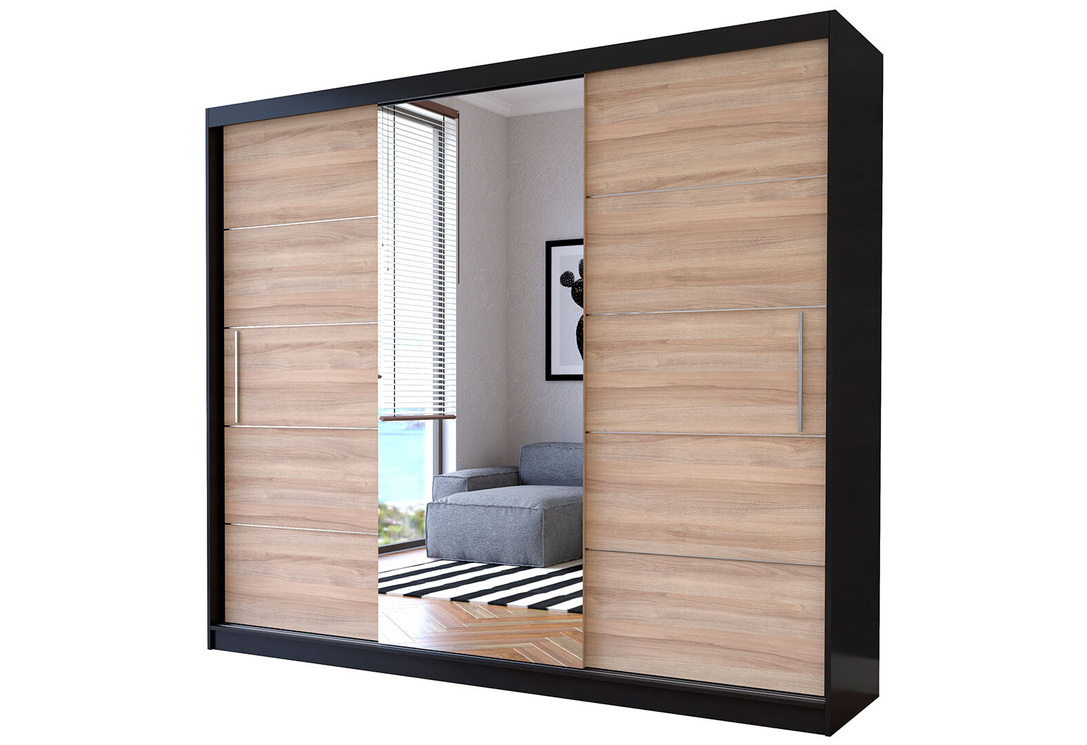 Fotografia 1 - Skriňa Albumy so zrkadlom čierny / dub sonoma