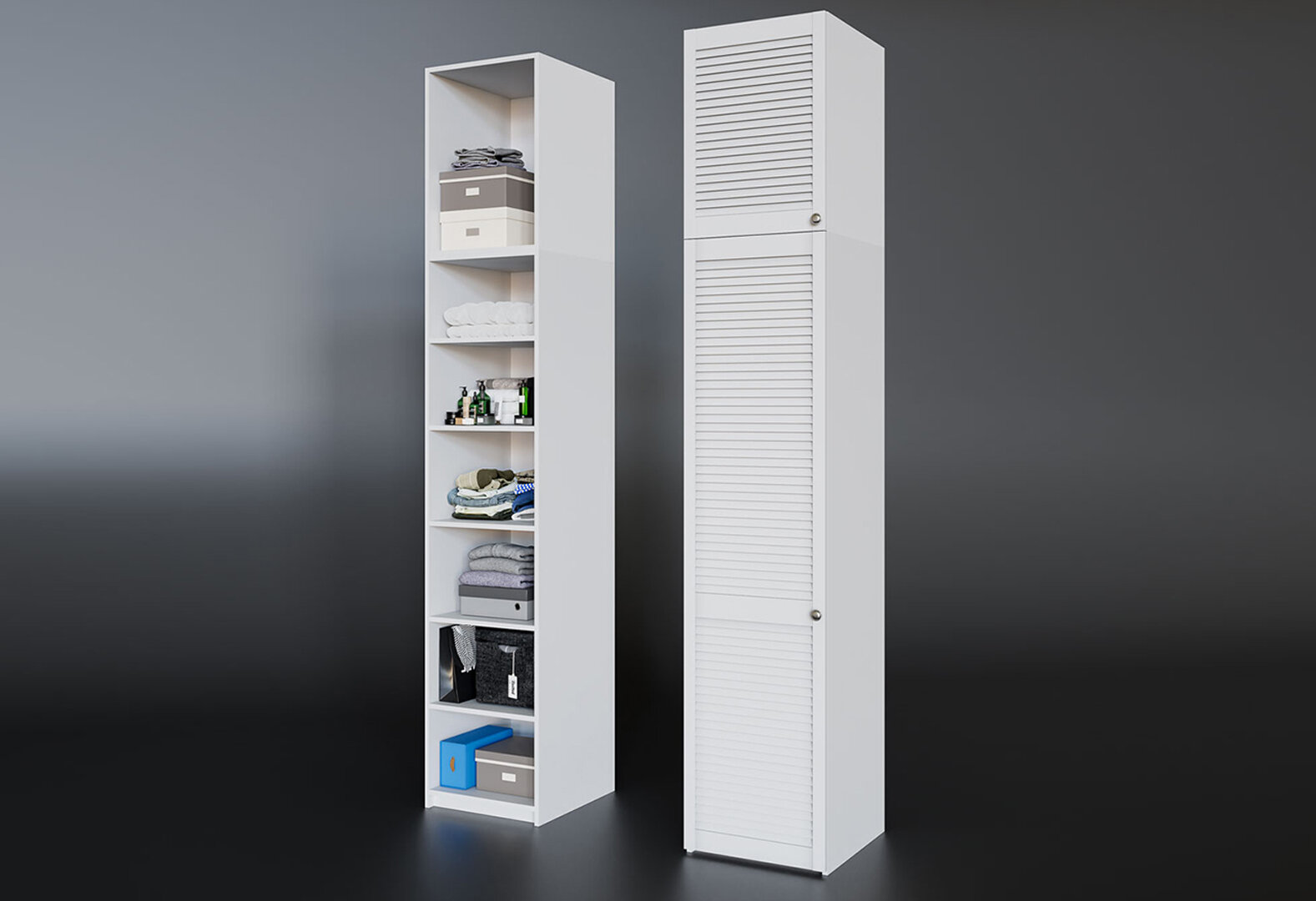 Skriňa č. 1 + Vysoká Antresol Biela Módulná skriňa Texas