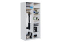 - Vnútorné usporiadanie. Skrina je vybavená policami a tyčou na zavesenie oblečenia, čo zabezpečuje prehľadnosť a pohodlný prístup.