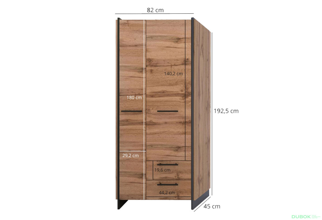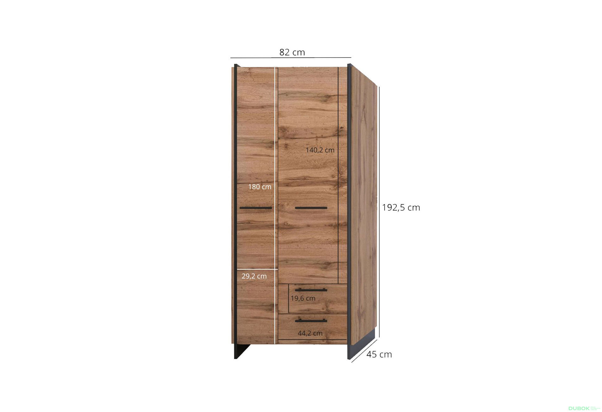 - Veľkosť. S rozmermi 82.00 cm na šírku, 192.50 cm na výšku a 45.00 cm na hĺbku ponúka dostatok priestoru na uloženie vašich vecí.