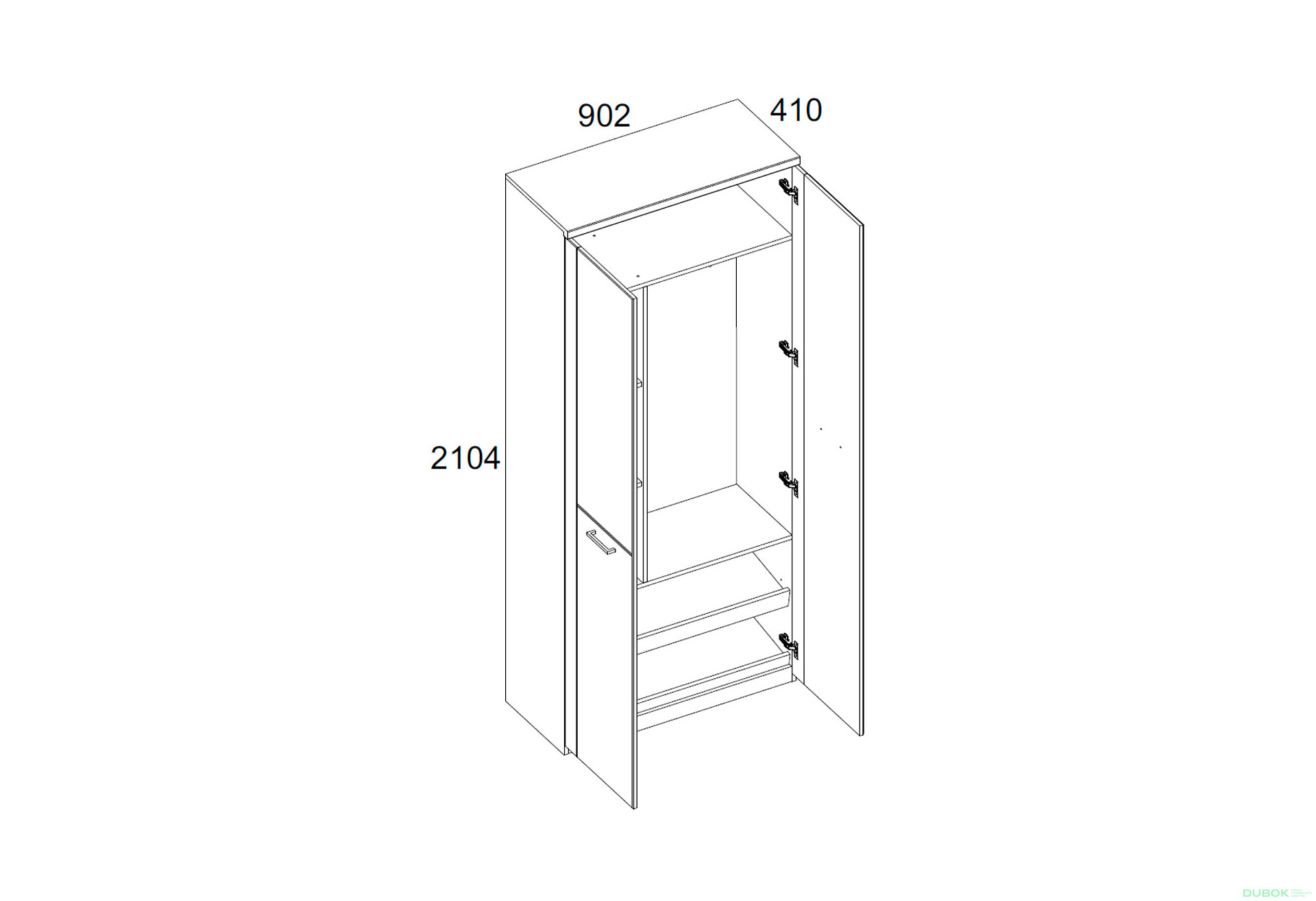 - Veľkosť. S rozmermi 90 cm šírka x 210 cm výška x 41 cm hĺbka je skriňa dostatočne priestranná, aby vyhovovala vašim potrebám bez toho, aby zaberala príliš veľa miesta.