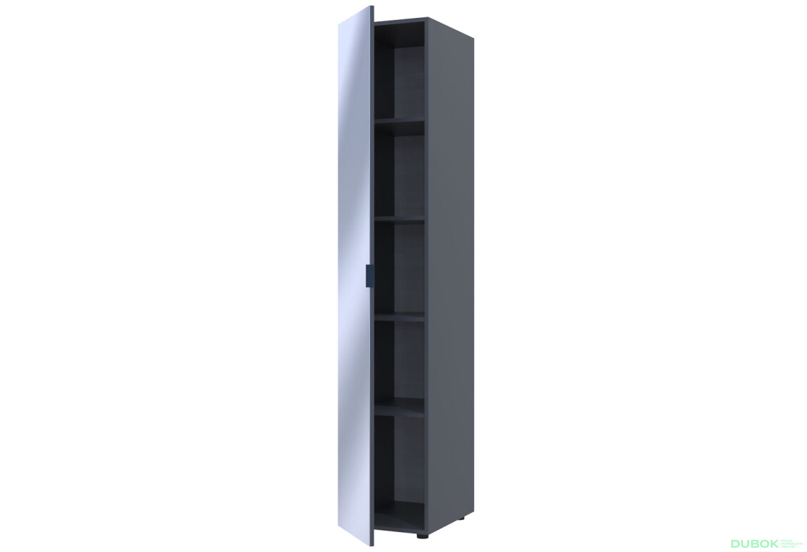 Jednodverová skriňa so zrkadlom Gelar je ideálnym riešením pre moderné interiéry, ktoré potrebujú praktické a elegantné úložné priestory. S rozmermi 39 cm na šírku, 203,4 cm na výšku a 49,5 cm na hĺbku ponúka dostatok miesta na uskladnenie rôznych predmetov. Jej moderný dizajn v grafitovom dekore s laminovaným povrchom zaručuje nielen atraktívny vzhľad, ale aj odolnosť voči každodennému opotrebovaniu. Skriňa je vybavená jednodverovými otváracími dverami a vnútorným usporiadaním s policami, čo zaručuje efektívne využitie priestoru. Zrkadlo na prednej strane pridáva na praktickosti a opticky zväčšuje priestor, čo je ideálne pre menšie miestnosti.
