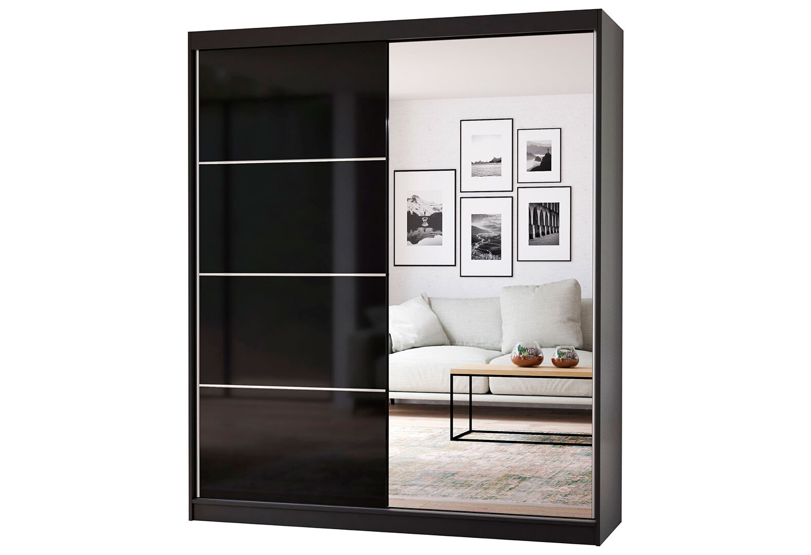 Fotografia 1 - Skriňa Multi 31, 183 čierna + fasáda čierny lesk + zrkadlo